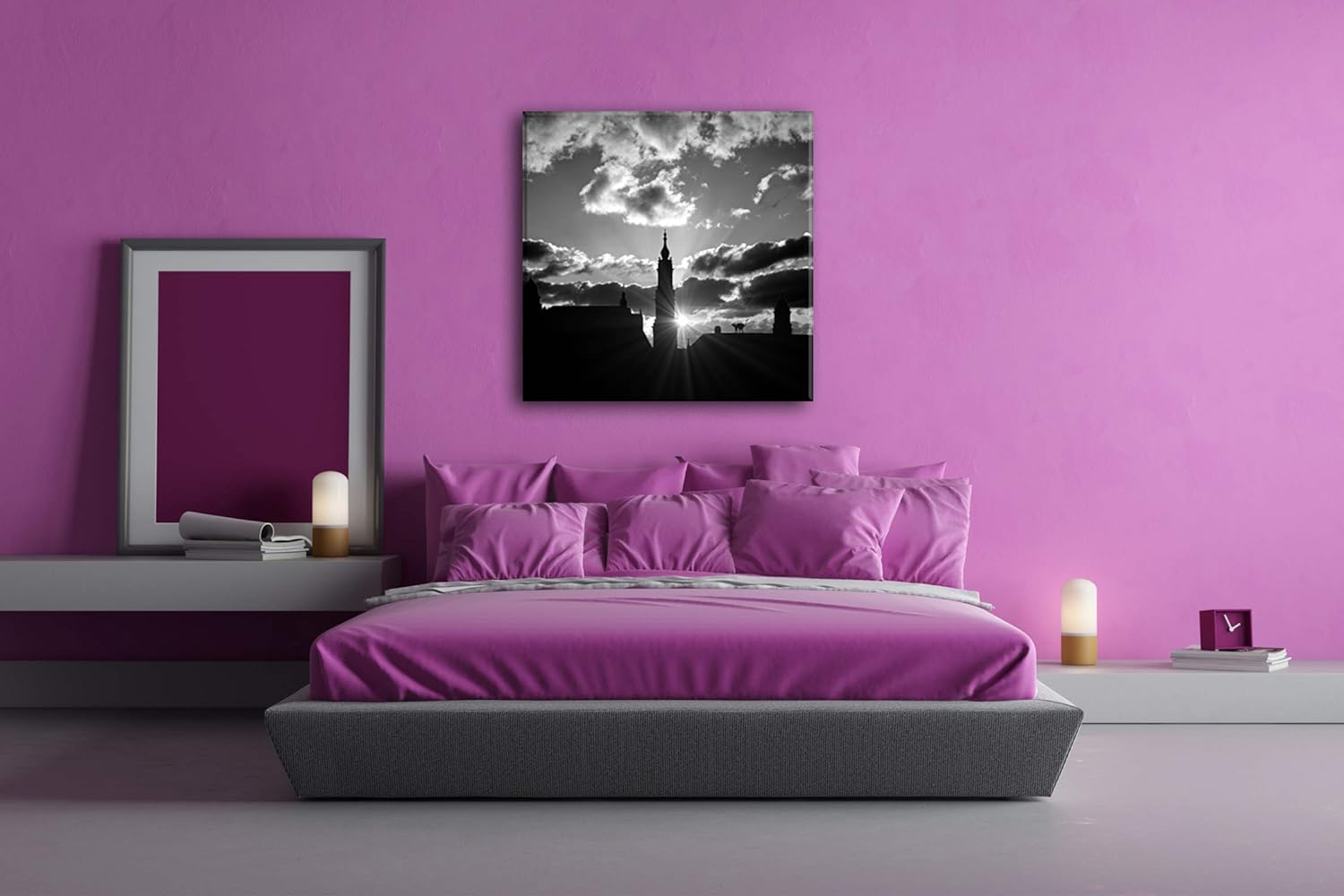 deyoli Sonnenaufgang über Dresdner Skyline Format: 60x60 Effekt: Schwarz&Weiss als Leinwandbild, Mot
