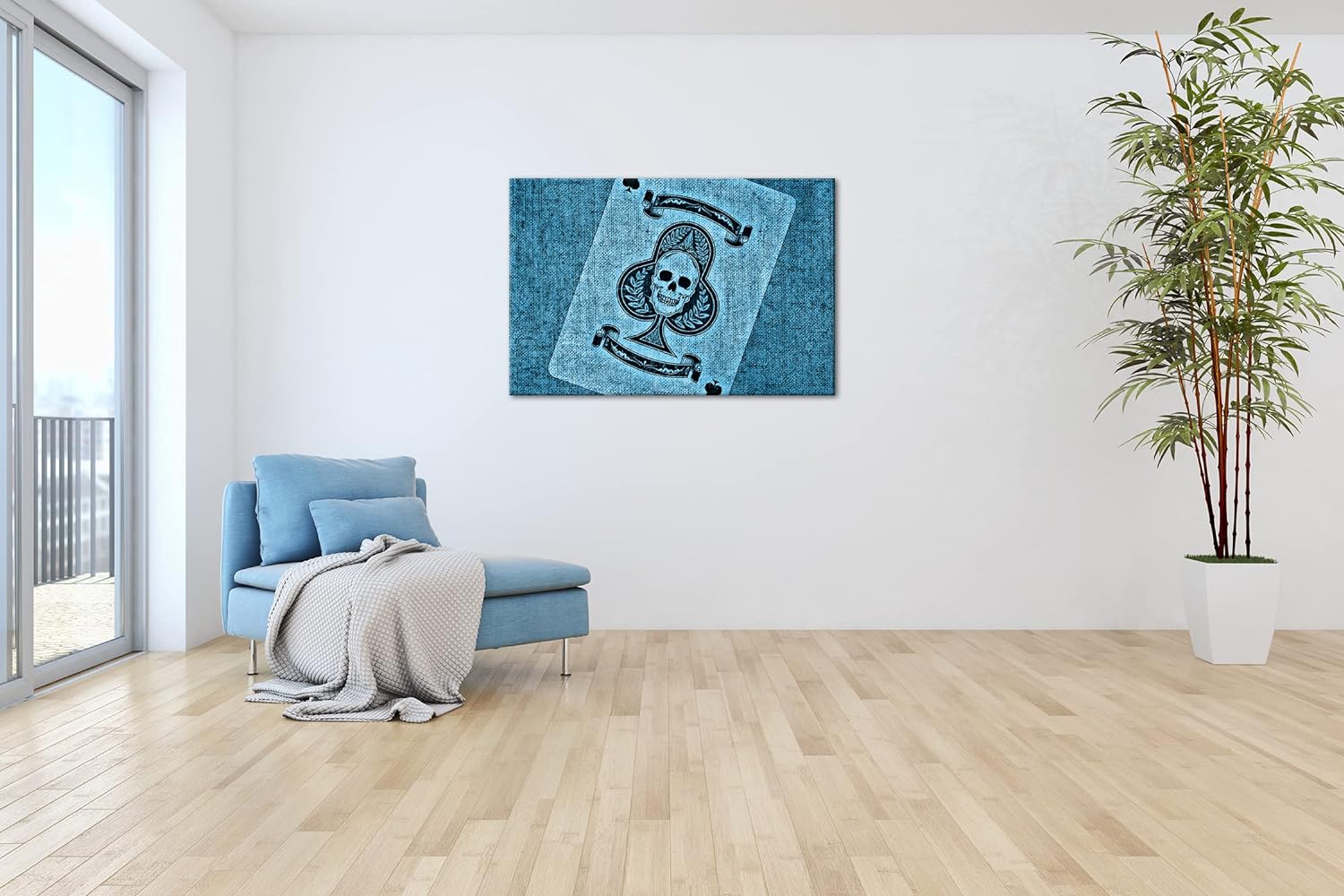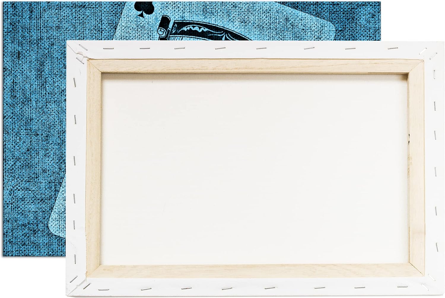 deyoli Spielkarte Ass Kreuz Format 80x60 Effekt: Monocrome Blau als Leinwandbild, Motiv fertig gerah