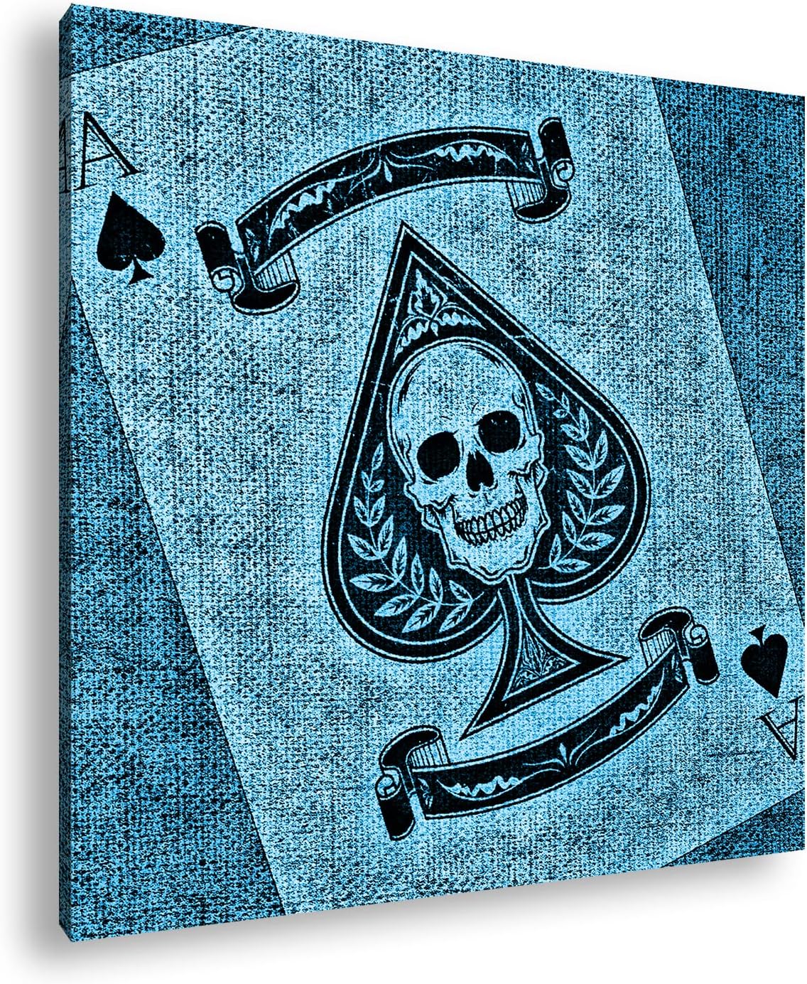 deyoli Spielkarte Ass Pik Format: 70x70 Effekt: Monocrome Blau als Leinwandbild, Motiv fertig gerahm