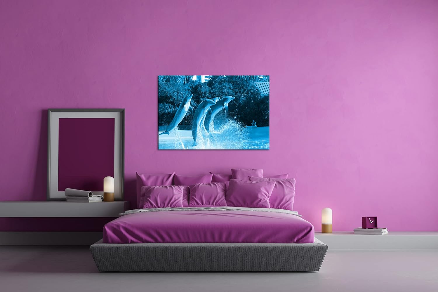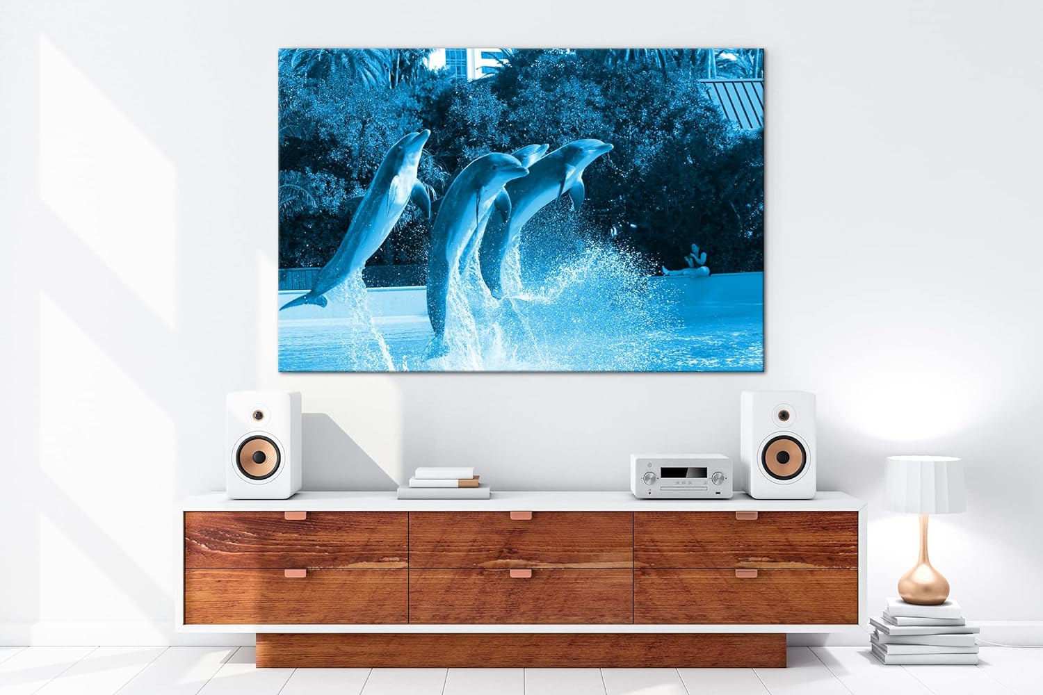 deyoli springende Delphine im Zoo Format 80x60 Effekt: Monocrome Blau als Leinwandbild, Motiv fertig