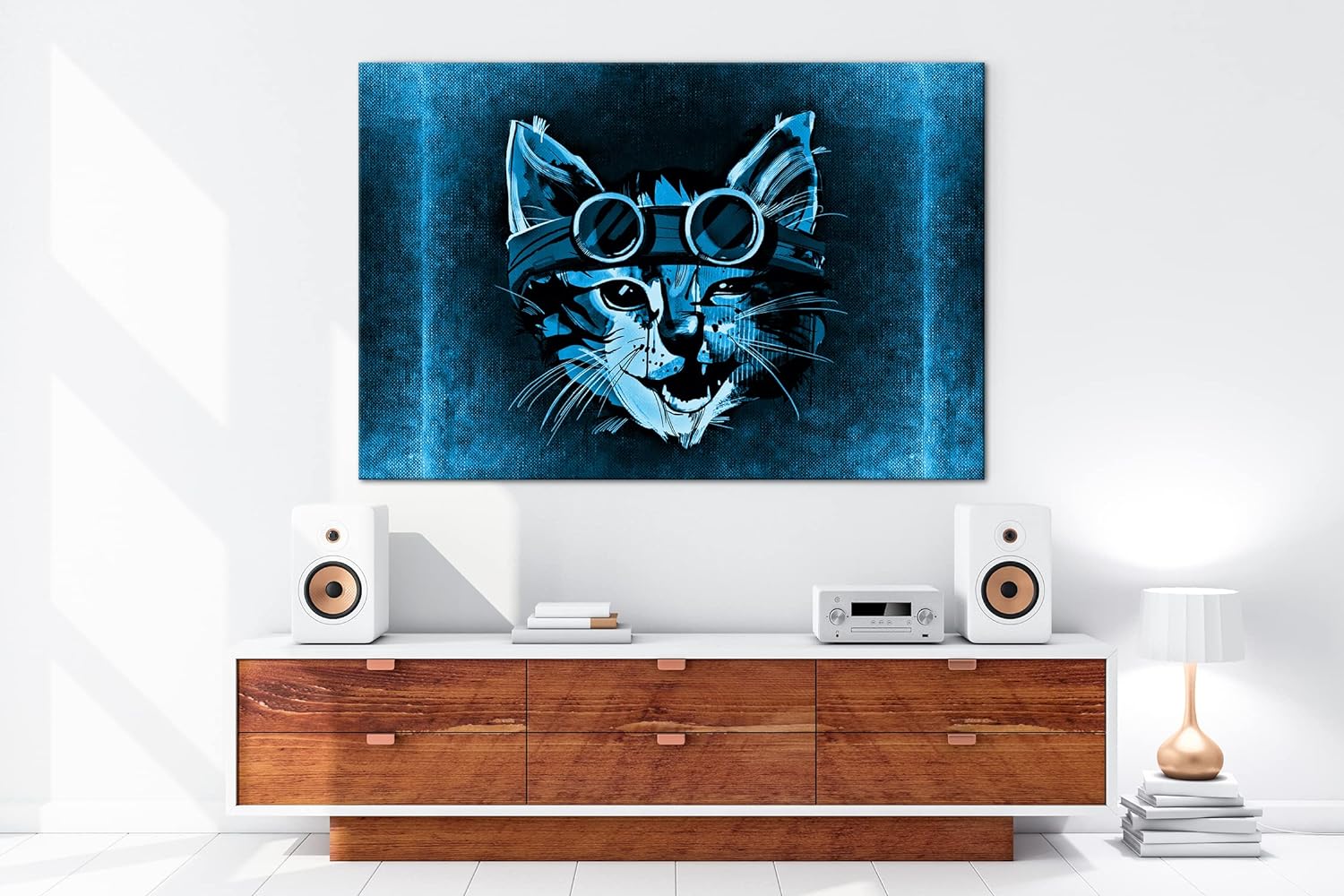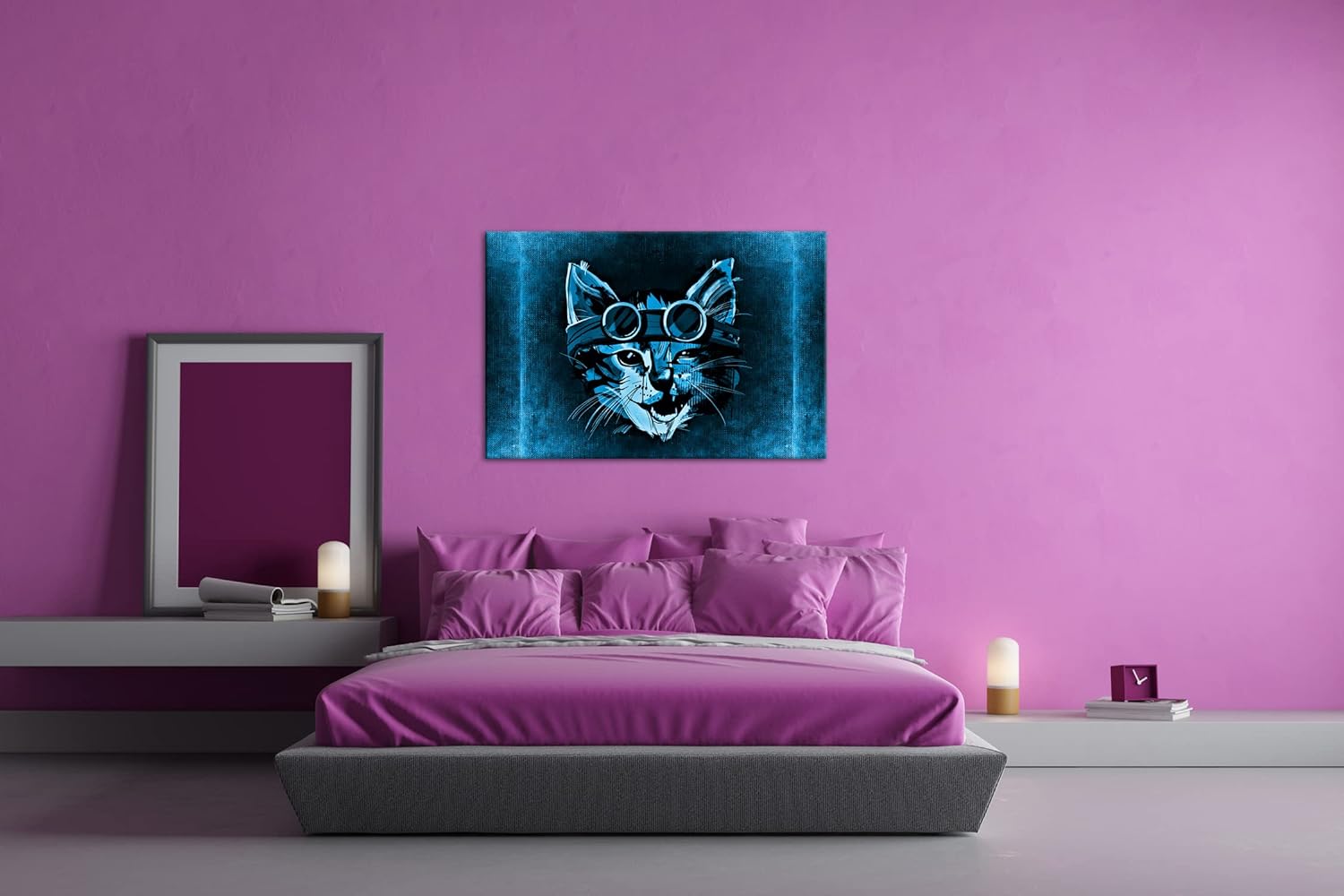 deyoli süsse Katze mit einer Brille Format 80x60 Effekt: Monocrome Blau als Leinwandbild, Motiv fert