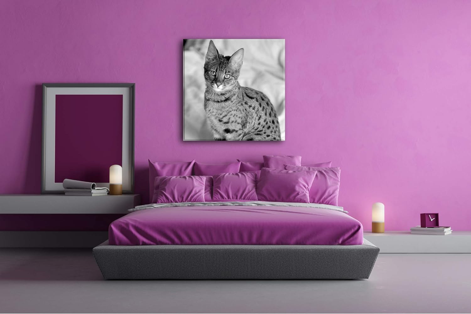 deyoli süsse Savannah Katze Format: 70x70 Effekt: Schwarz&Weiss als Leinwandbild, Motiv auf Echtholz