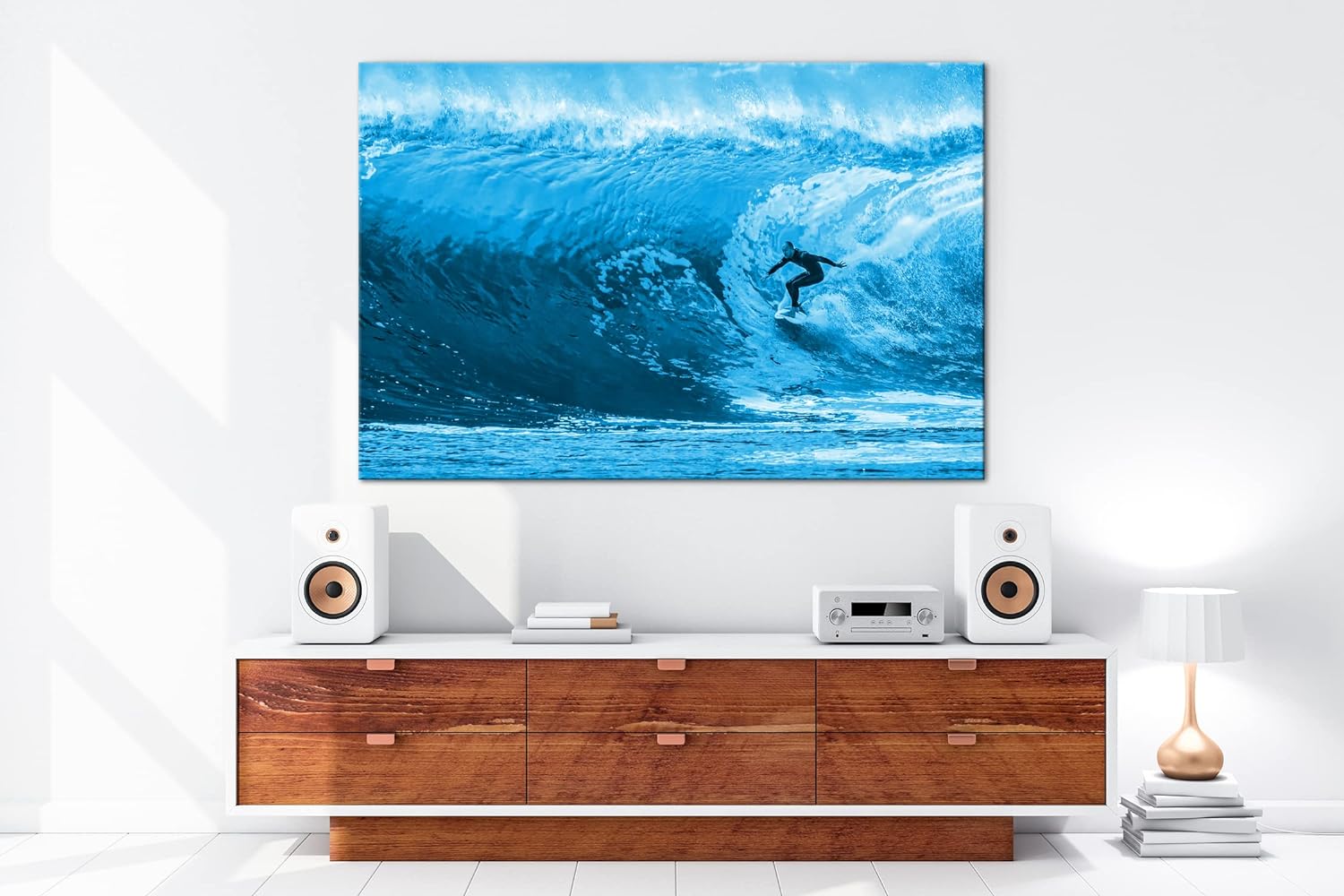 deyoli Surfer in Aktion Format 80x60 Effekt: Monocrome Blau als Leinwandbild, Motiv fertig gerahmt a