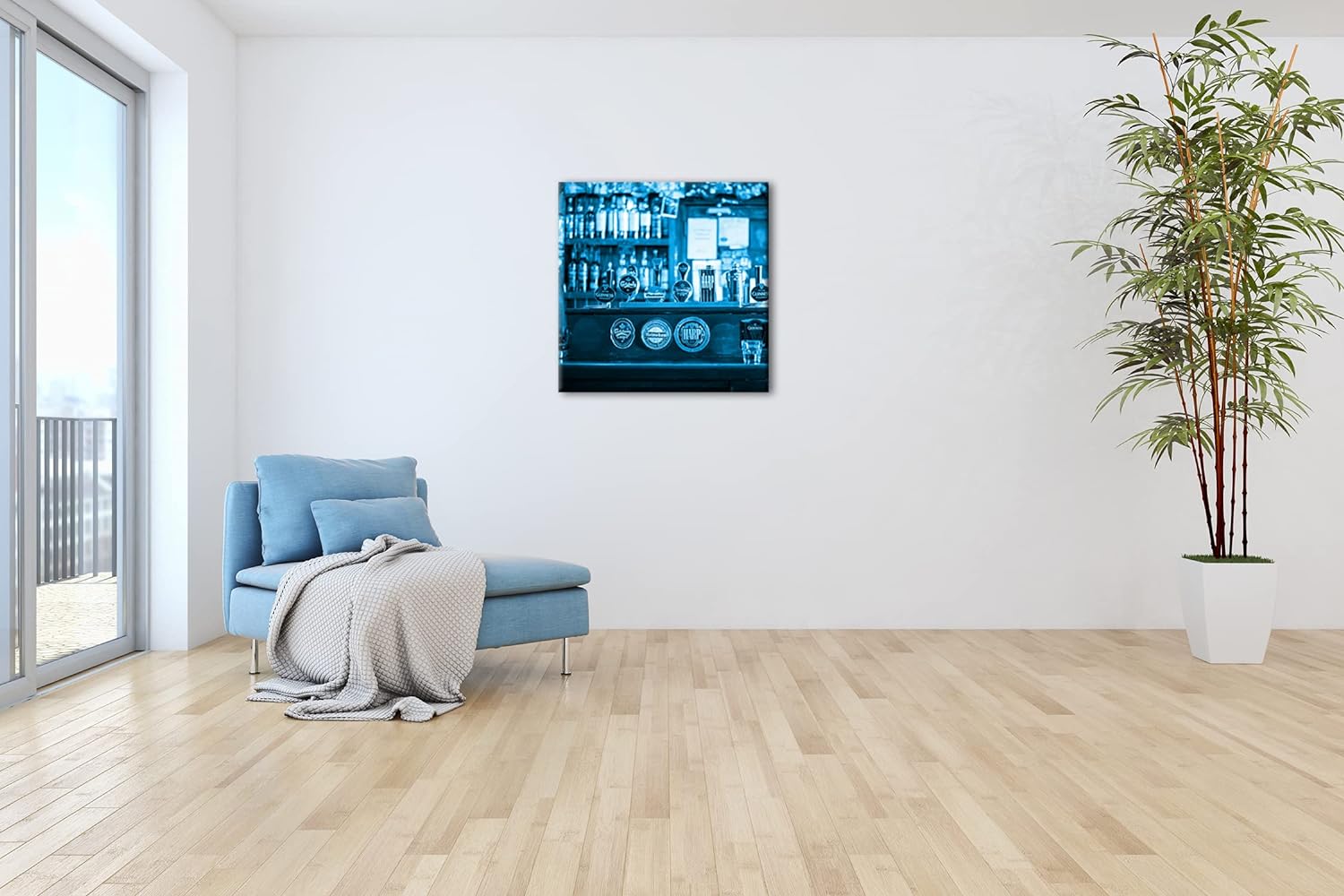 deyoli Theke in einem Irischen Bar Format: 70x70 Effekt: Monocrome Blau als Leinwandbild, Motiv fert