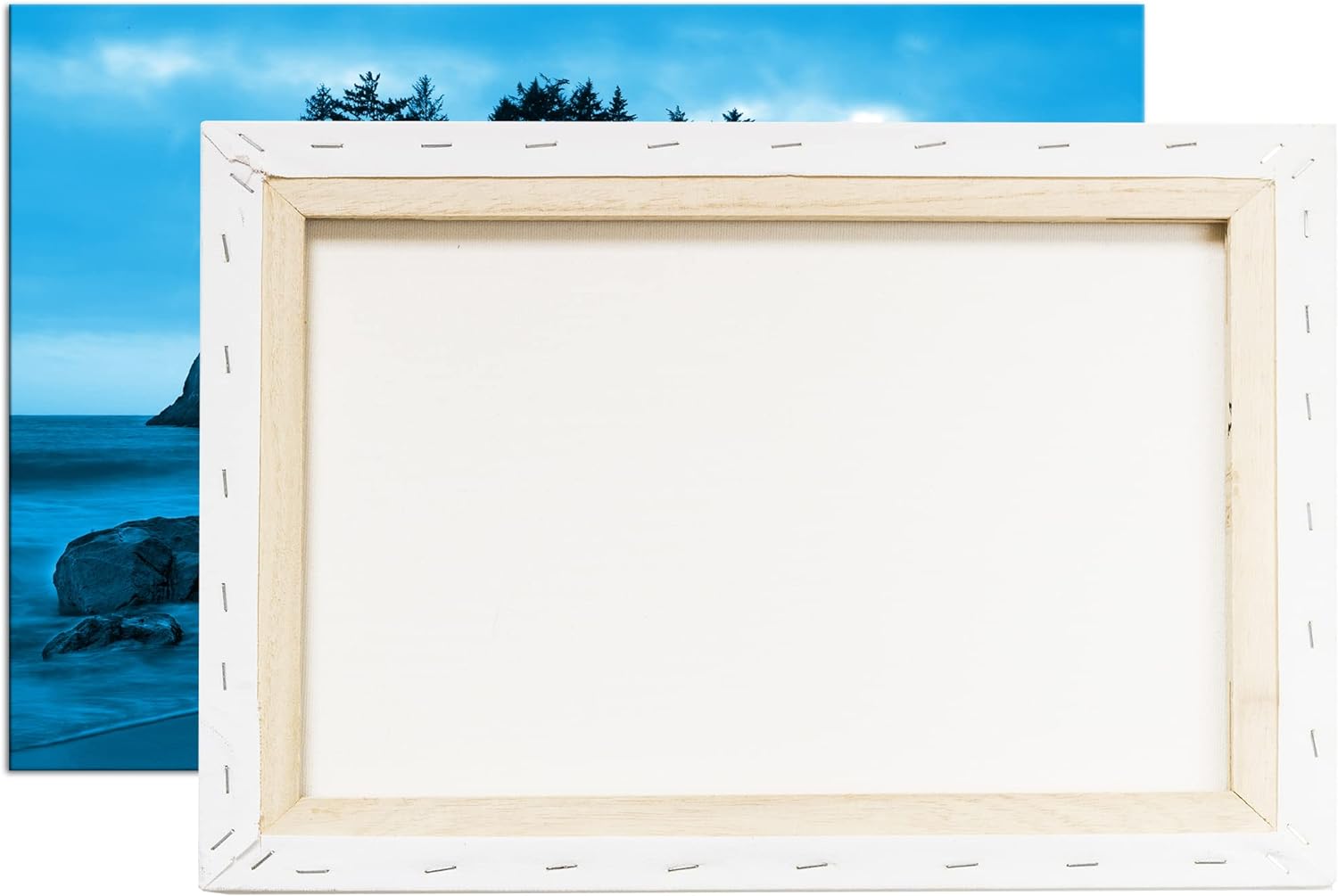 deyoli traumhafte Insel Format 80x60 Effekt: Monocrome Blau als Leinwandbild, Motiv fertig gerahmt a