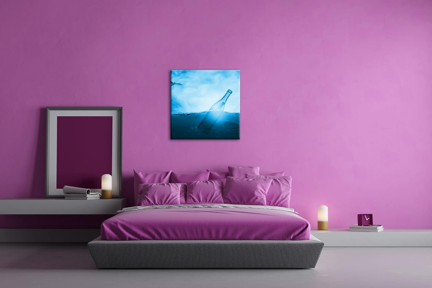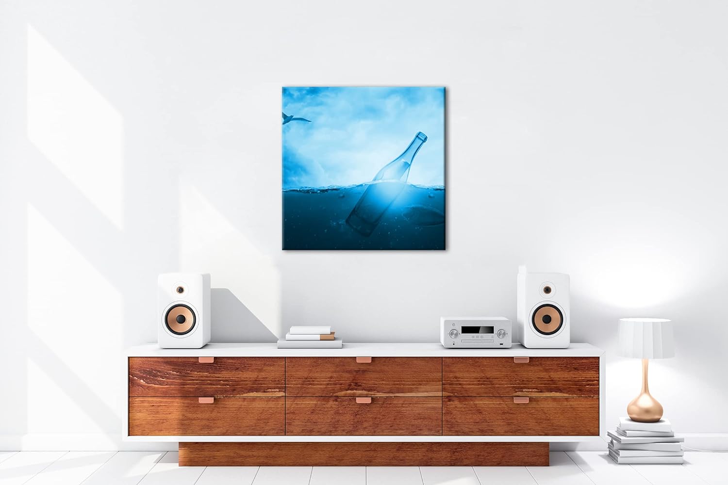 deyoli treibende Flaschenpost Format: 60x60 Effekt: Monocrome Blau als Leinwandbild, Motiv fertig ge