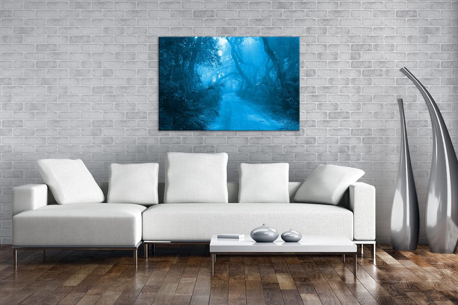 deyoli tropischer Waldweg Format: 80x60 Effekt: Monocrome Blau als Leinwand, Motiv fertig gerahmt au