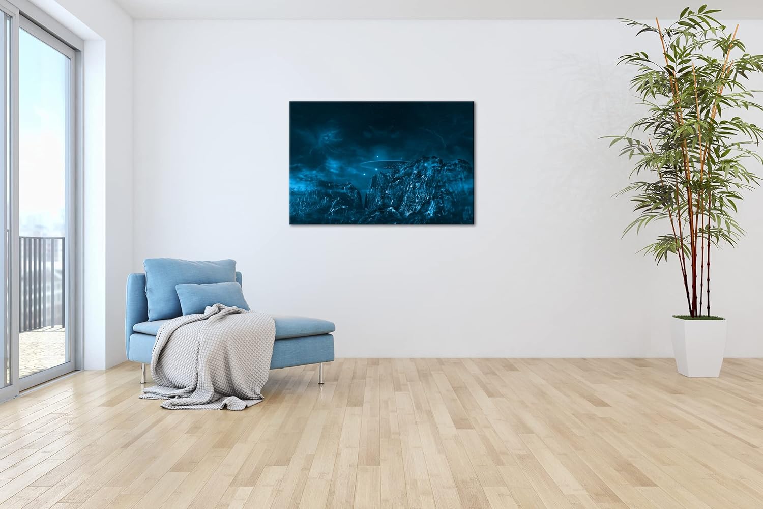 deyoli UFO auf einem fremden Planeten Format 80x60 Effekt: Monocrome Blau als Leinwandbild, Motiv fe