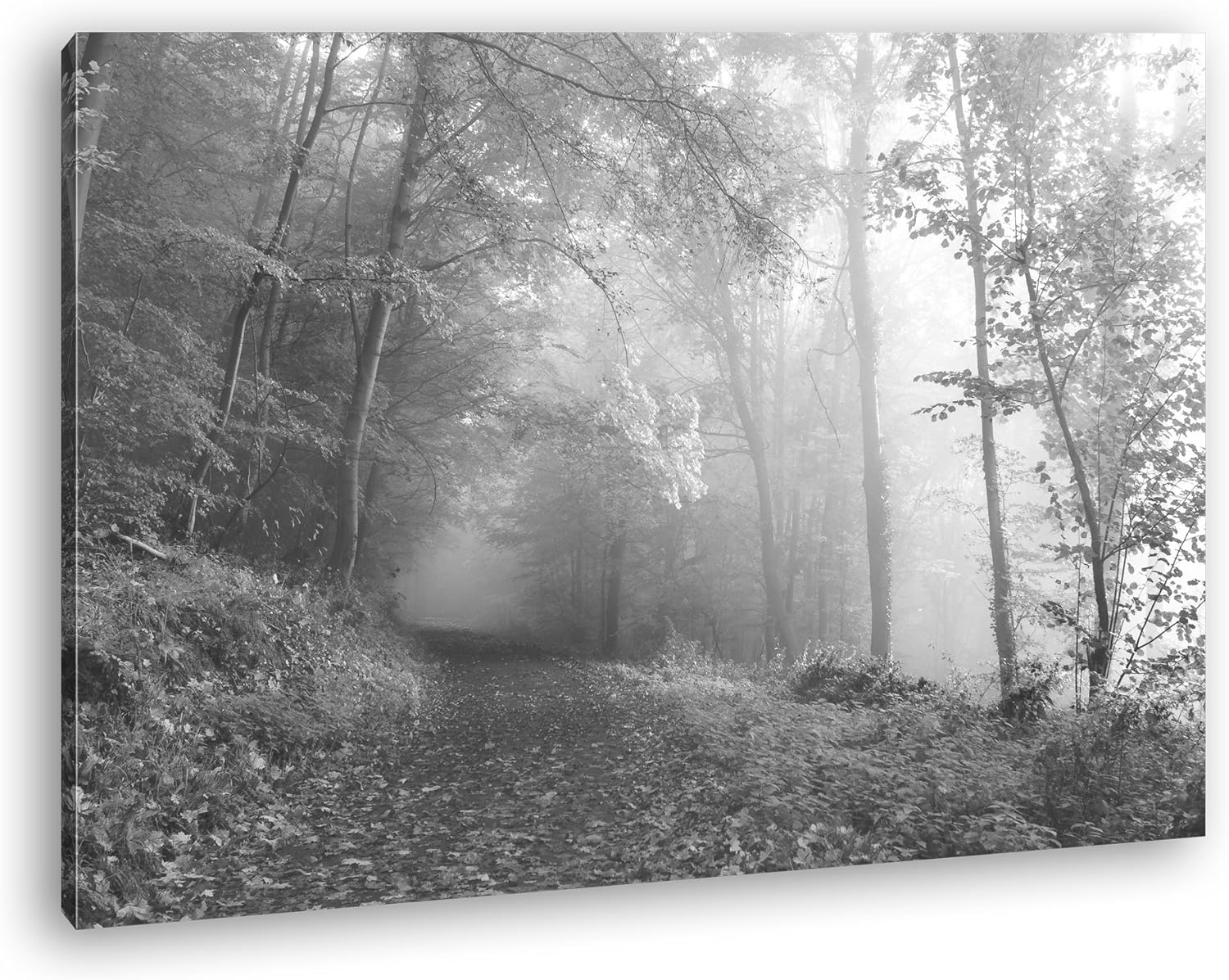 deyoli vernebelter Waldweg im Herbst Effekt: Schwarz/Weiss Format: 80x60 als Leinwand, Motiv fertig