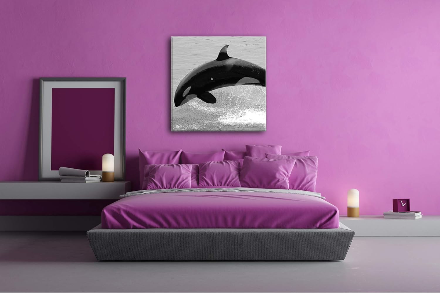 deyoli verspielter Orca Format: 70x70 Effekt: Schwarz&Weiss als Leinwandbild, Motiv auf Echtholzrahm