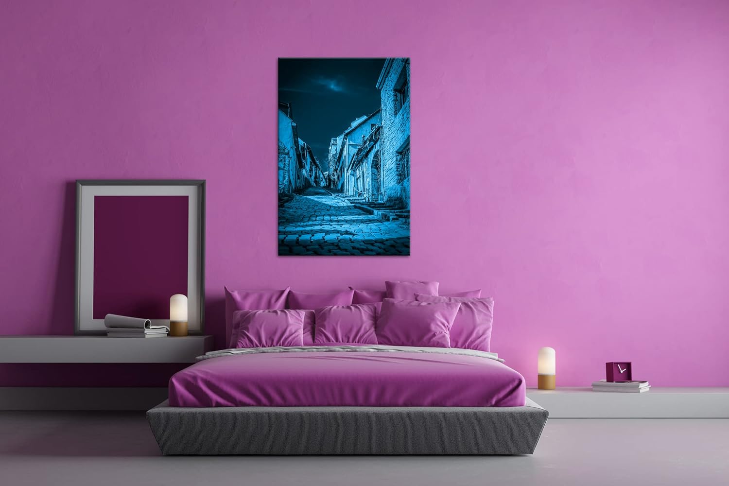 deyoli verwitterte Strasse in Budapest Format 80x60 Effekt: Monocrome Blau als Leinwandbild, Motiv f