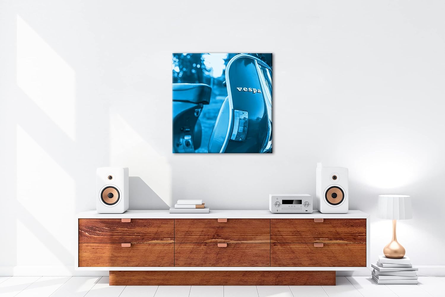 deyoli Vespa Motorrad in schöner Landschaft Format: 70x70 Effekt: Monocrome Blau als Leinwandbild, M