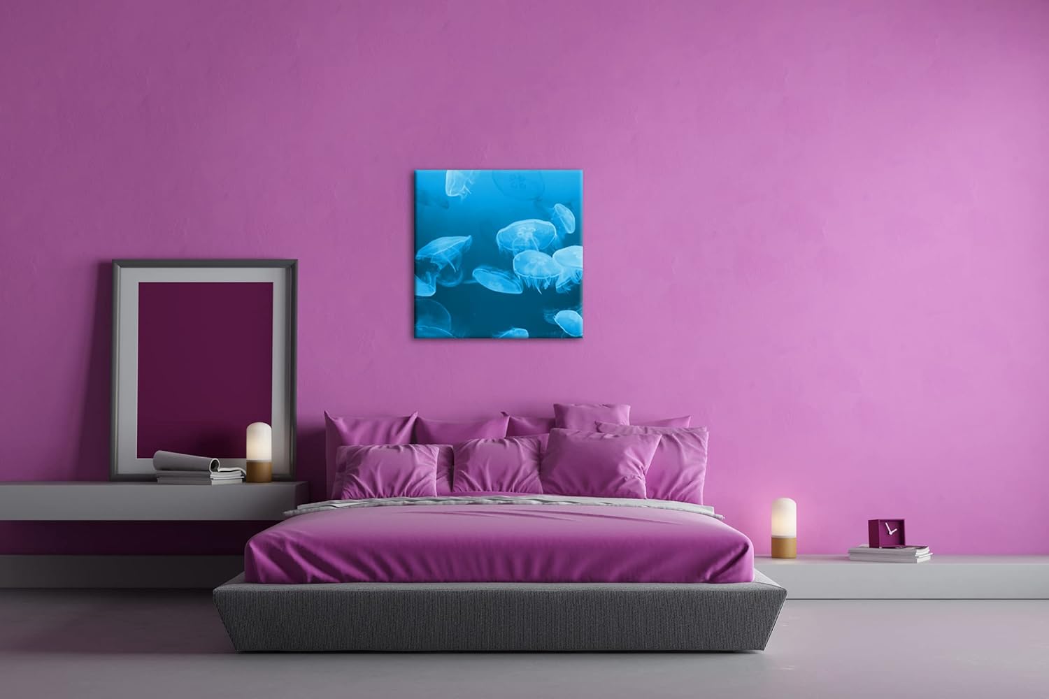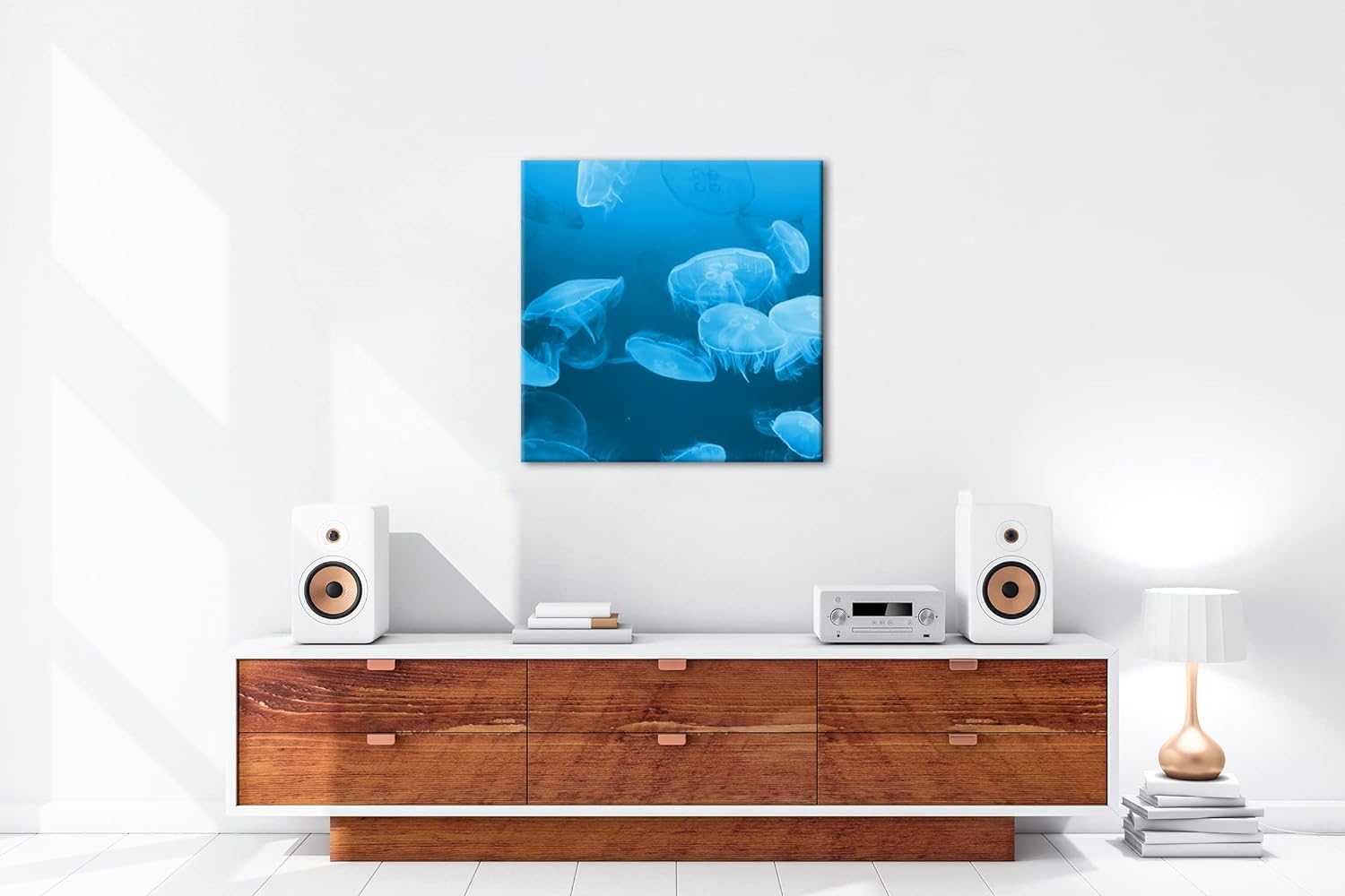 deyoli viele Blaue Quallen Format: 60x60 Effekt: Monocrome Blau als Leinwandbild, Motiv fertig gerah