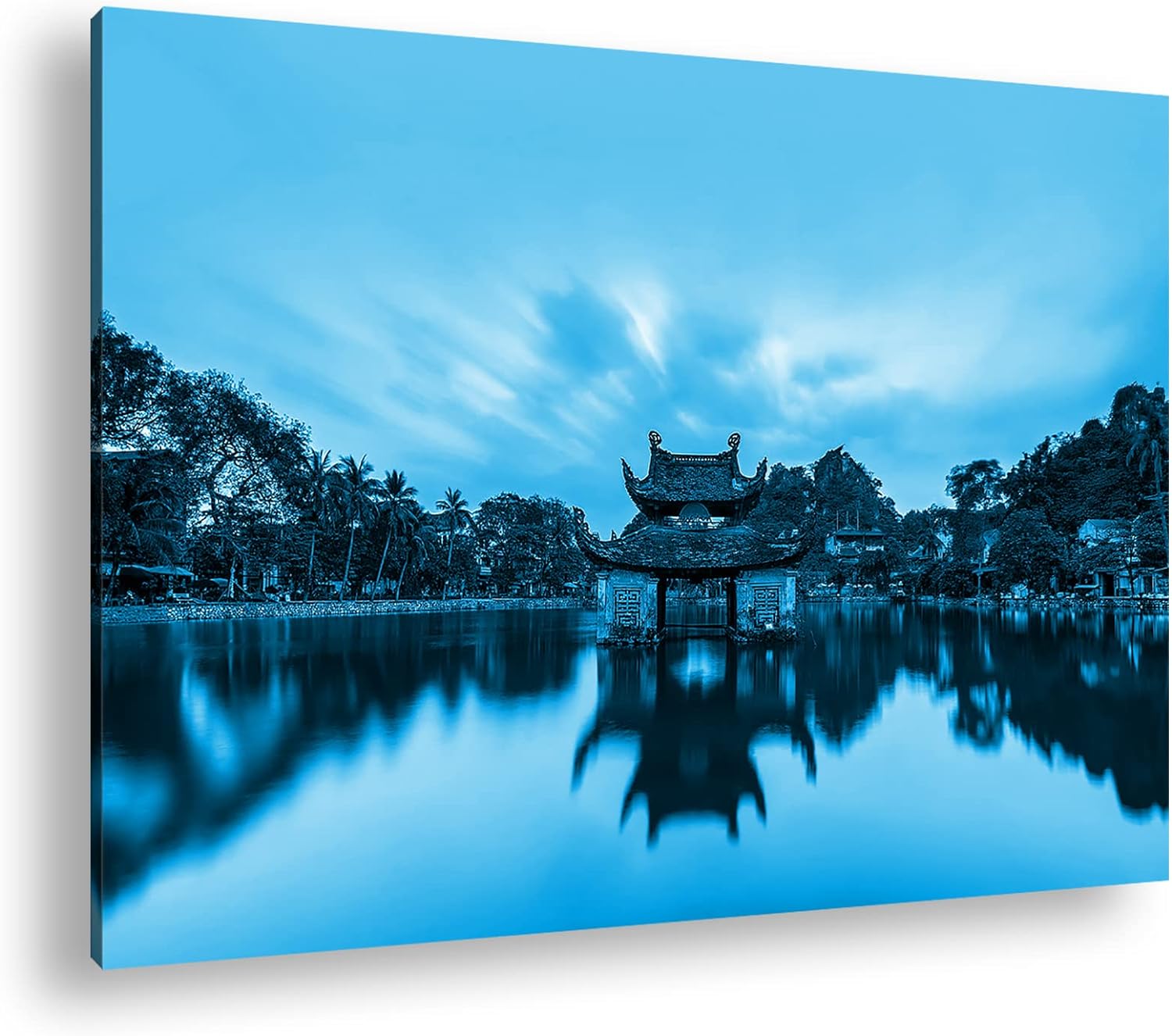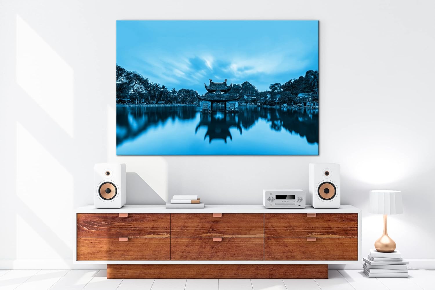 deyoli Vietnam Tempel in Pagoda Format: 80x60 Effekt: Monocrome Blau als Leinwand, Motiv fertig gera