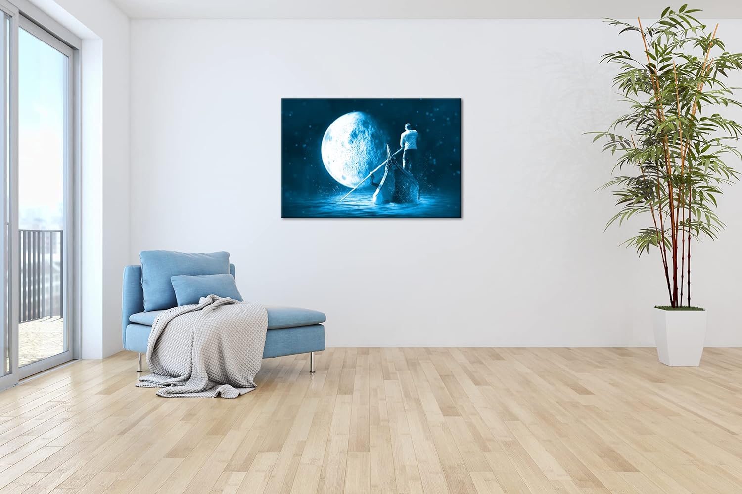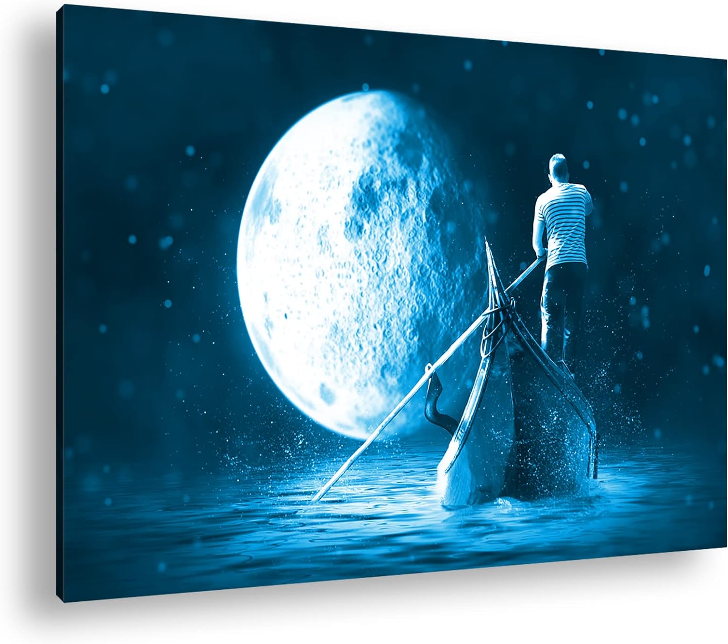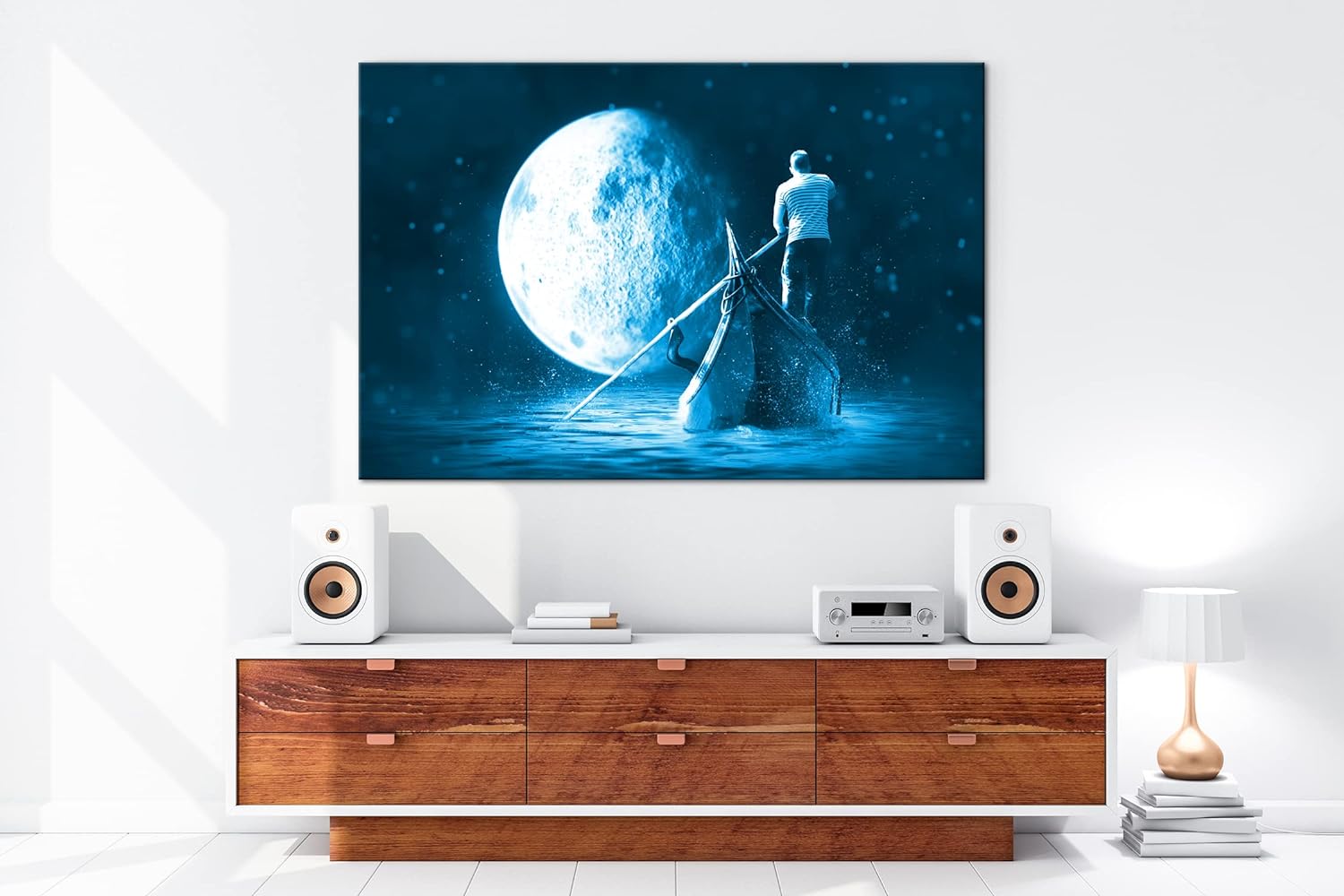 deyoli Vollmond-Gondelfahrt Format: 80x60 Effekt: Monocrome Blau als Leinwandbild, Motiv fertig gera