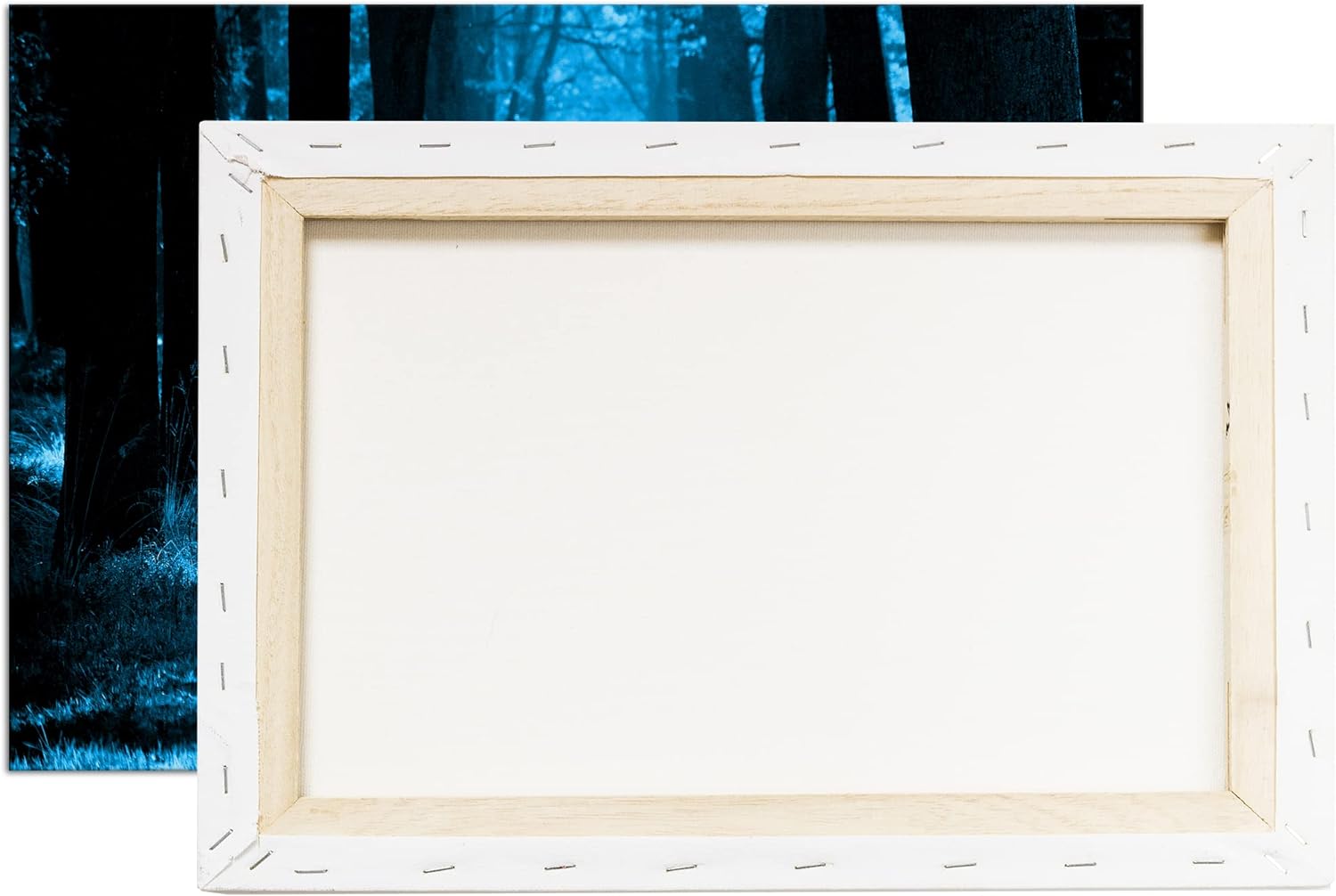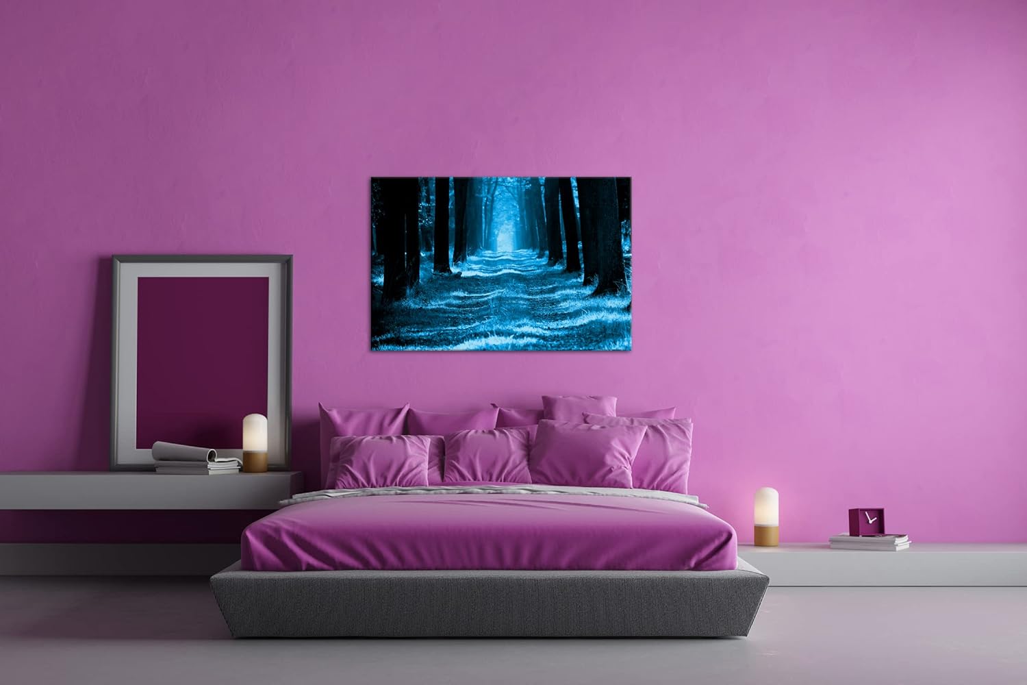 deyoli Waldweg im Herbst Format 80x60 Effekt: Monocrome Blau als Leinwandbild, Motiv fertig gerahmt