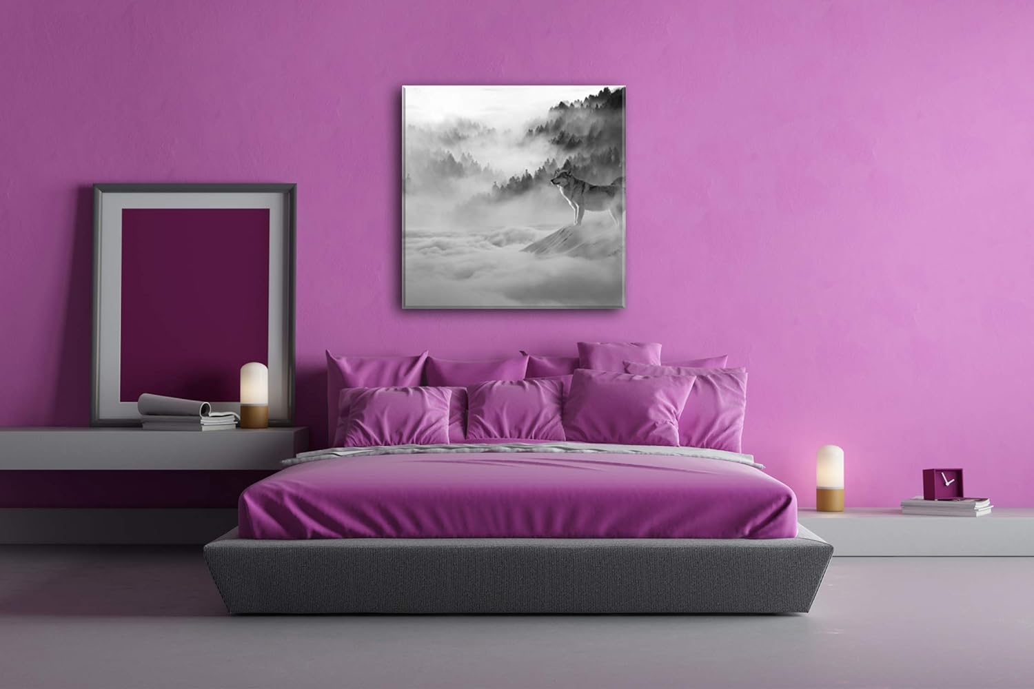 deyoli Wolf in Einer malerischen Schneelandschaft Format: 70x70 Effekt: Schwarz&Weiss als Leinwandbi