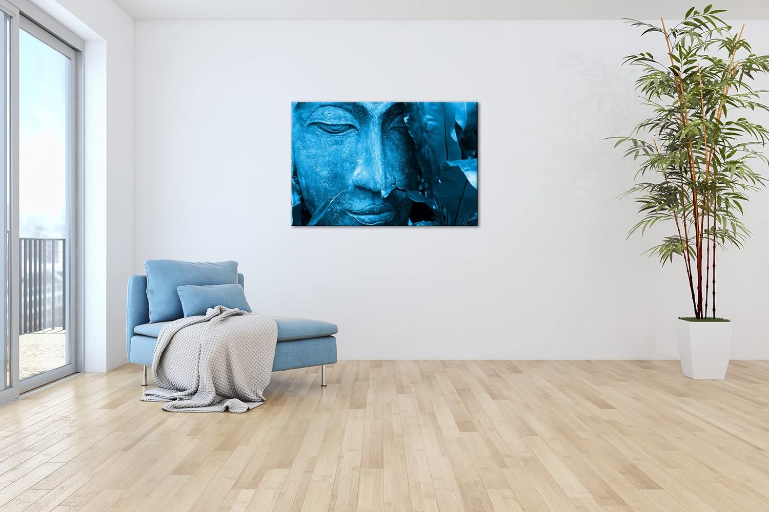 deyoli Zen Buddha Statur Format 80x60 Effekt: Monocrome Blau als Leinwandbild, Motiv fertig gerahmt