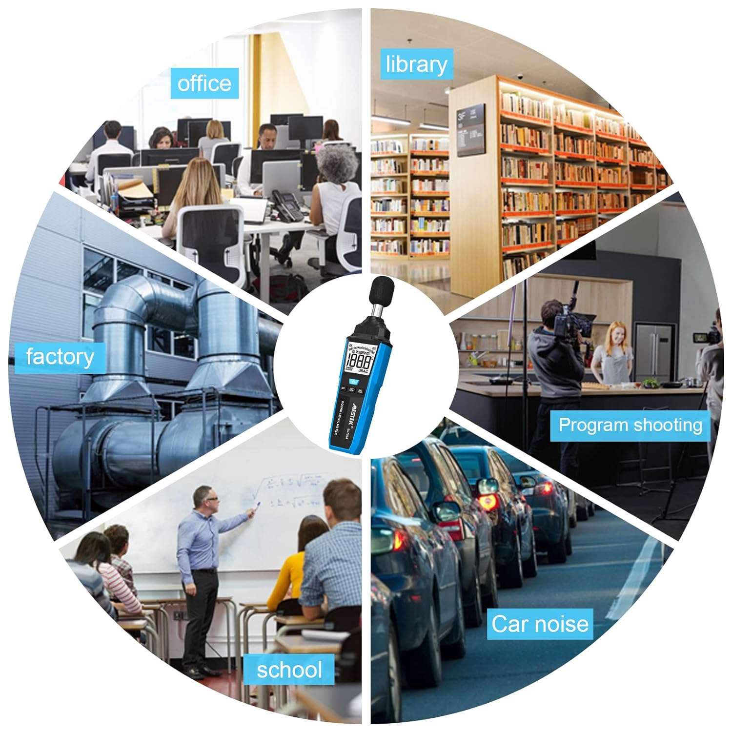 - 【Professionelle Präzision】Der Schallpegelmesser verwendet kapazitiven Mikrofonsensor, um Rauschen in digitale Anzeige umzuwandeln. Der Messbereich beträgt 30~130dB. Die Genauigkeit beträgt bis zu ± 2,0dB. Echtzeitüberwachung, schnelle Reaktion