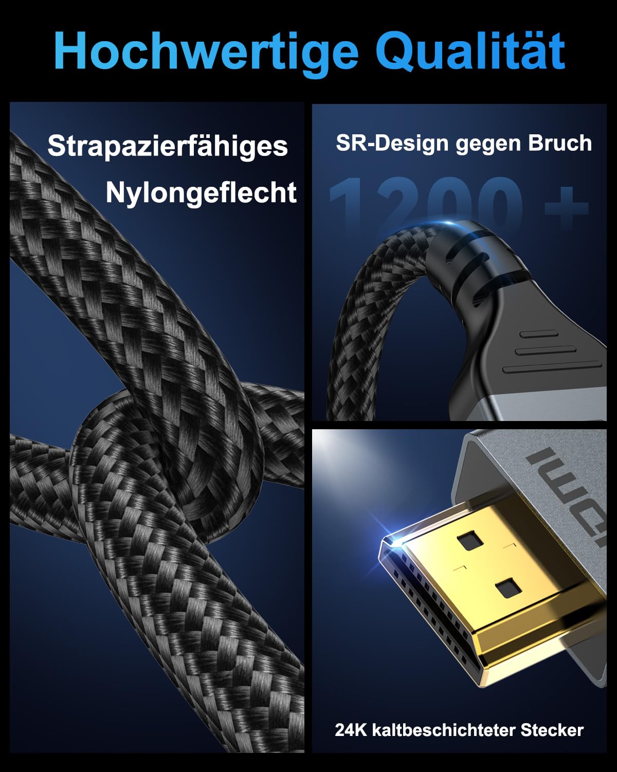 - Hochwertige und Langlebigkeit: Dieses HDMI 2.2 Kabel verwendet den beliebtesten klassischen Stil, die verbesserte Festigkeit der Aluminiumlegierungsschale und das Anti-Biegendesign des Schwanzes machen es langlebiger. Das Zugnylon Material verlängert