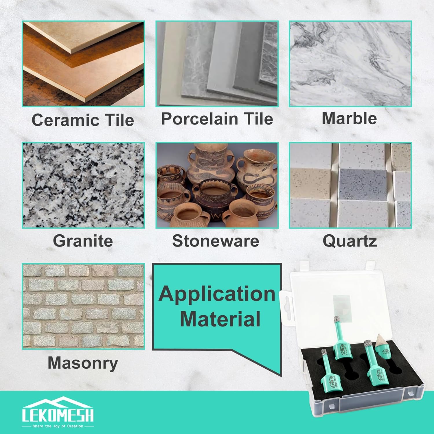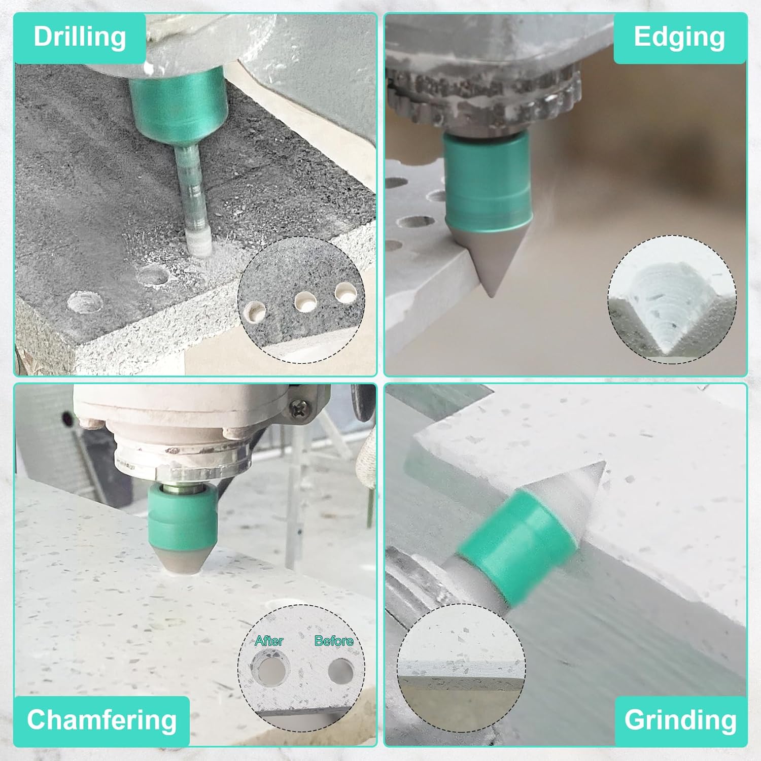 • 【ANWENDUNG】Zum Trocken- oder Nassbohren, Schleifen, Anfasen, Vergrössern, Formen und Reiben von Porzellan, Keramik, Marmor, Granit, Steinzeug, Quarz, mikrokristallinem Stein und Kunststein.