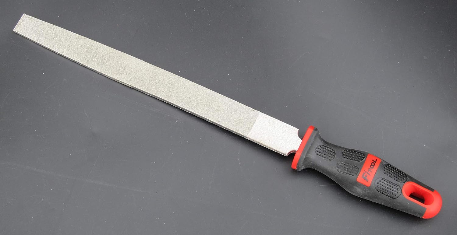 - Spezifikationen: Gesamtlänge: 37,3 cm Länge der Feile: 25 cm Breite der Feile: 2,4 cm; Feilstärke: 0,5 cm; Diamant-Arbeitsfläche (beidseitig): 21,5 x 2,4 cm. Mittlere Diamantkörnung #150 Griffgrösse (L x B x H): 11,4 x 3,5 x 3,1 cm. Produktgewicht: