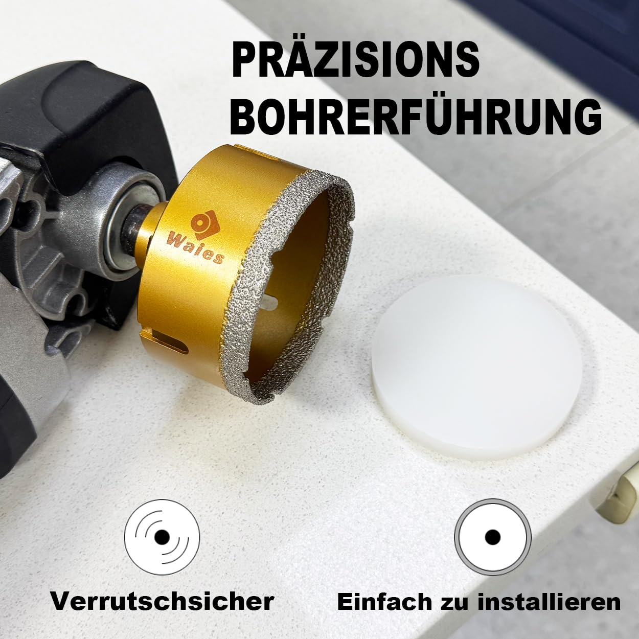 - 【Vollständiges Set】Enthält einen 68-mm-Diamantbohrer mit M14-Gewinde und eine Zentrierhilfe, die für präziseres Anbohren und ein geringeres Abrutschrisiko unterstützt. Geeignet für Keramik, Feinsteinzeug, Granit, Marmor und ähnliche