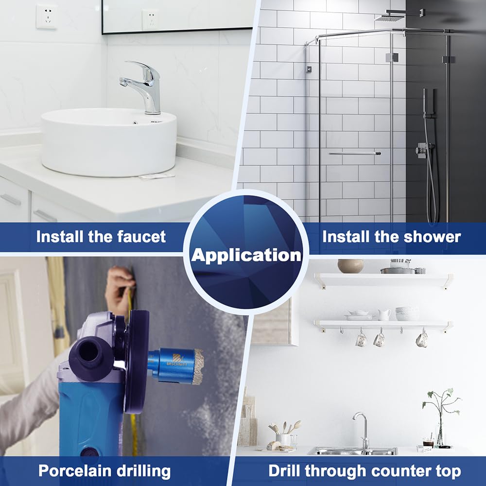 • ✔Breite Anwendungen – Diamantbohrkronen eignen sich hervorragend zum Trockenbohren von Löchern durch Porzellanfliesen, Keramik, Badezimmerfliesen, Marmorgranit, Stein, Mauerwerk, Ziegel. Die Verwendung von Wasser kann die Lebensdauer verlängern.