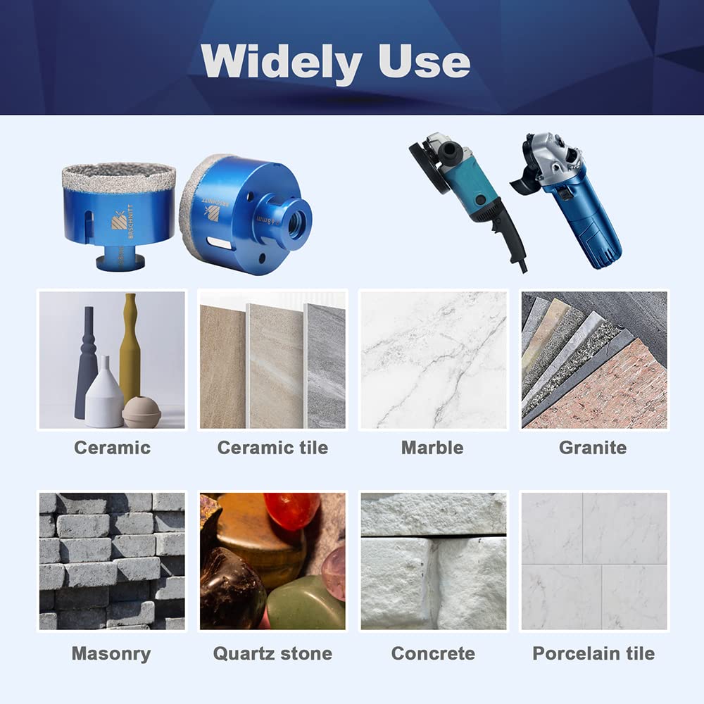 • ✔Breite Anwendungen – Diamantbohrkronen eignen sich hervorragend zum Trockenbohren von Löchern durch Porzellanfliesen, Keramik, Badezimmerfliesen, Marmorgranit, Stein, Mauerwerk, Ziegel. Die Verwendung von Wasser kann die Lebensdauer verlängern.