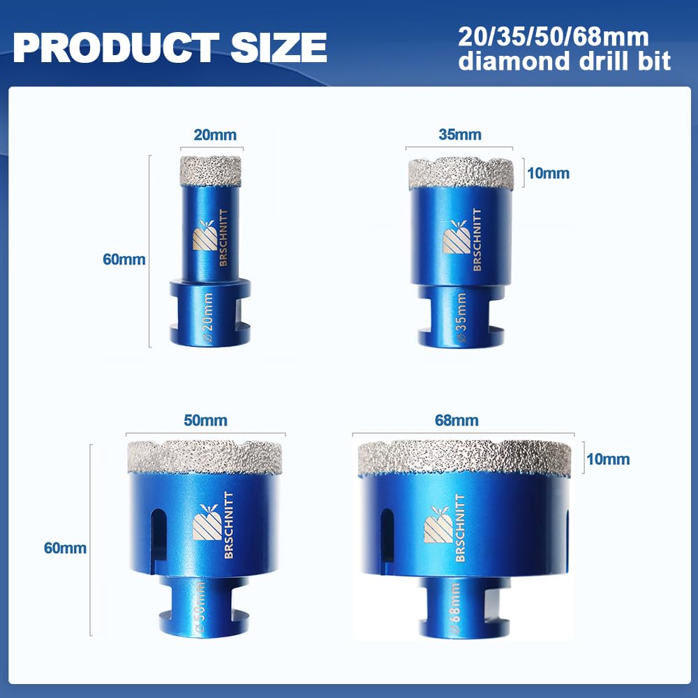 • ✔Grösse -20/35/50/68mm, Diamanthöhe 10mm, Gesamtlänge 60mm, M14 Gewinde des Fliesenbohrers