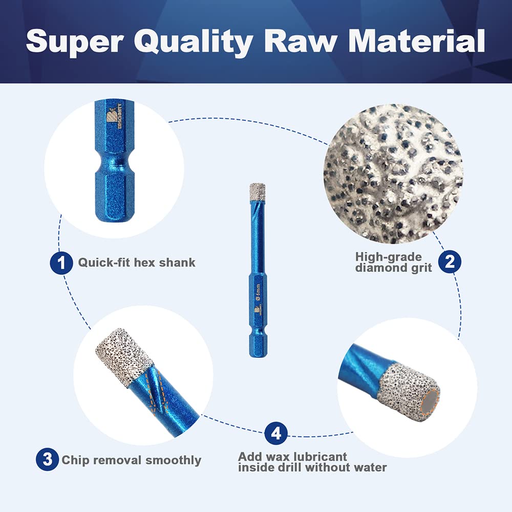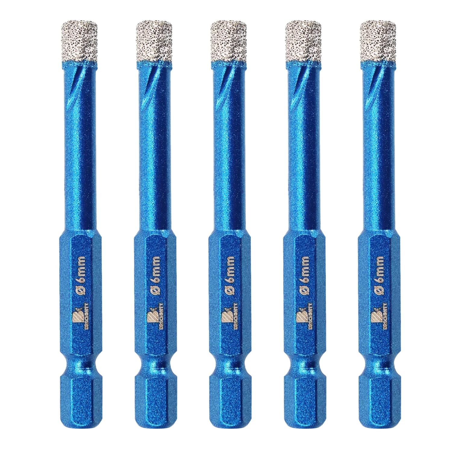 - ✔Grösse -5 Stück/Packung 1/4"(6 mm), Diamanthöhe 8 mm, Gesamtlänge 65 mm, Schnellmontage 6,5 mm, Diamantkörnung # 50/60 Diamant-Kernbohrer