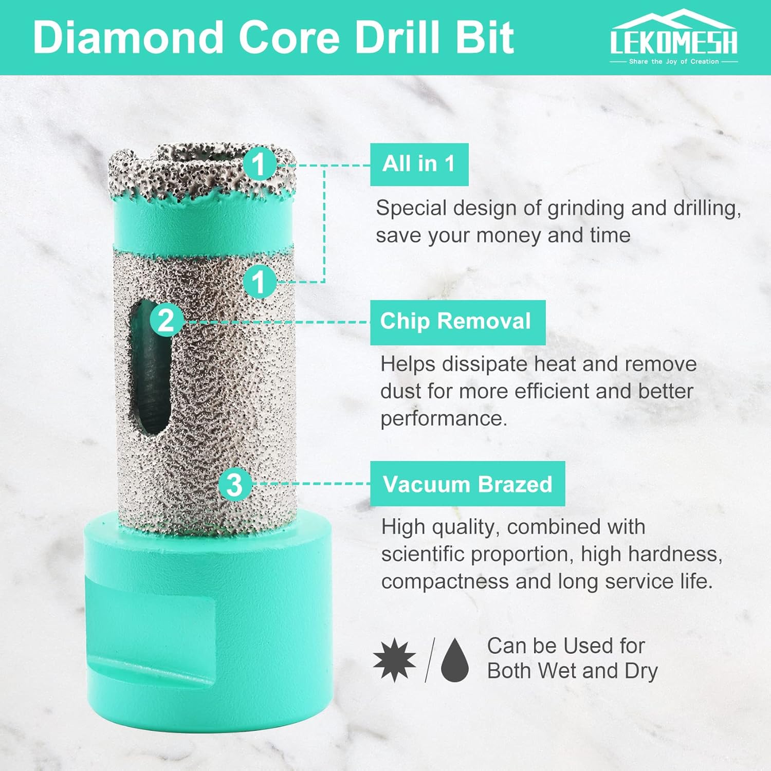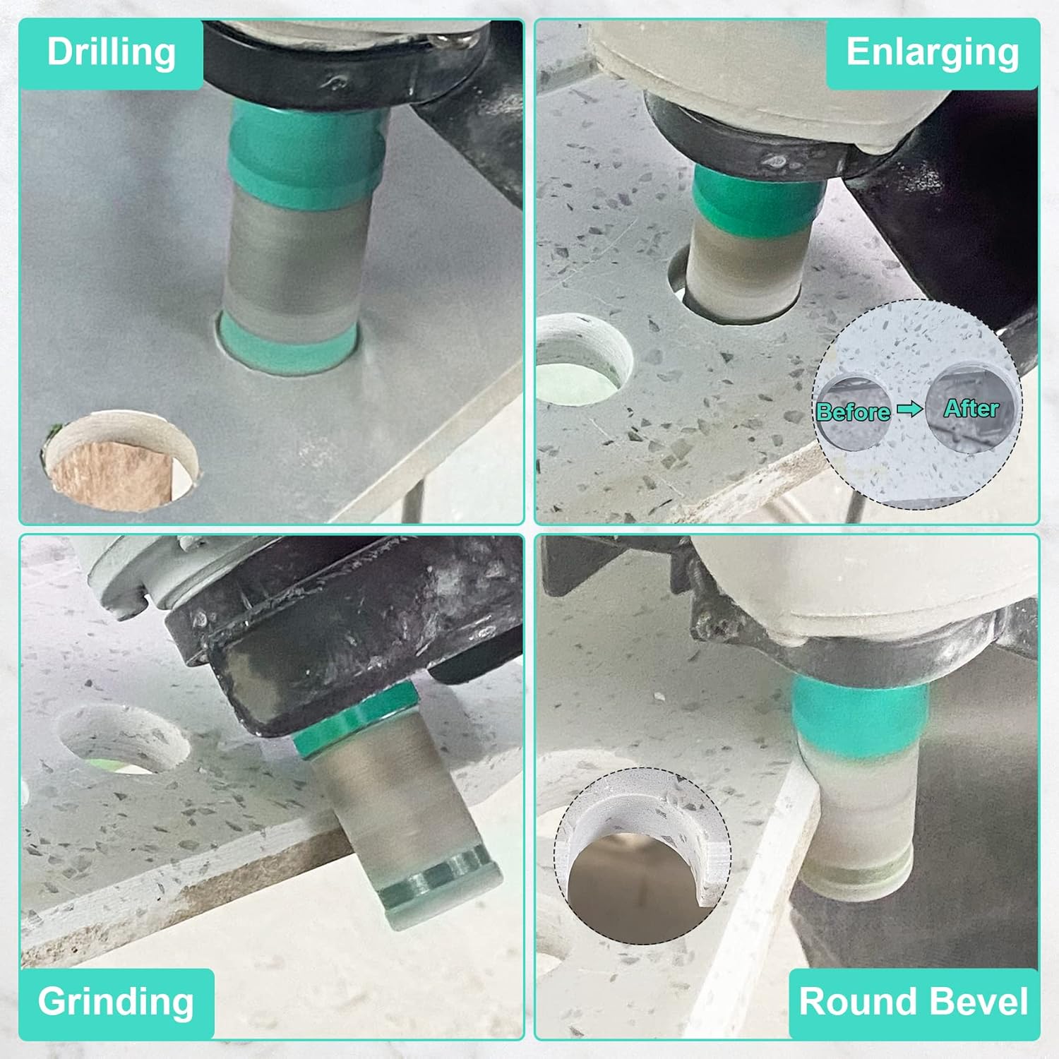 • 【Multifunktions】Verwendet zum Bohren von Schleif-Reiben, Vergrössern von Formlöchern in Porzellankeramikfliesen Marmor Granit Kunststein und Steinzeug etc. Trocken oder Nass Gebrauch.