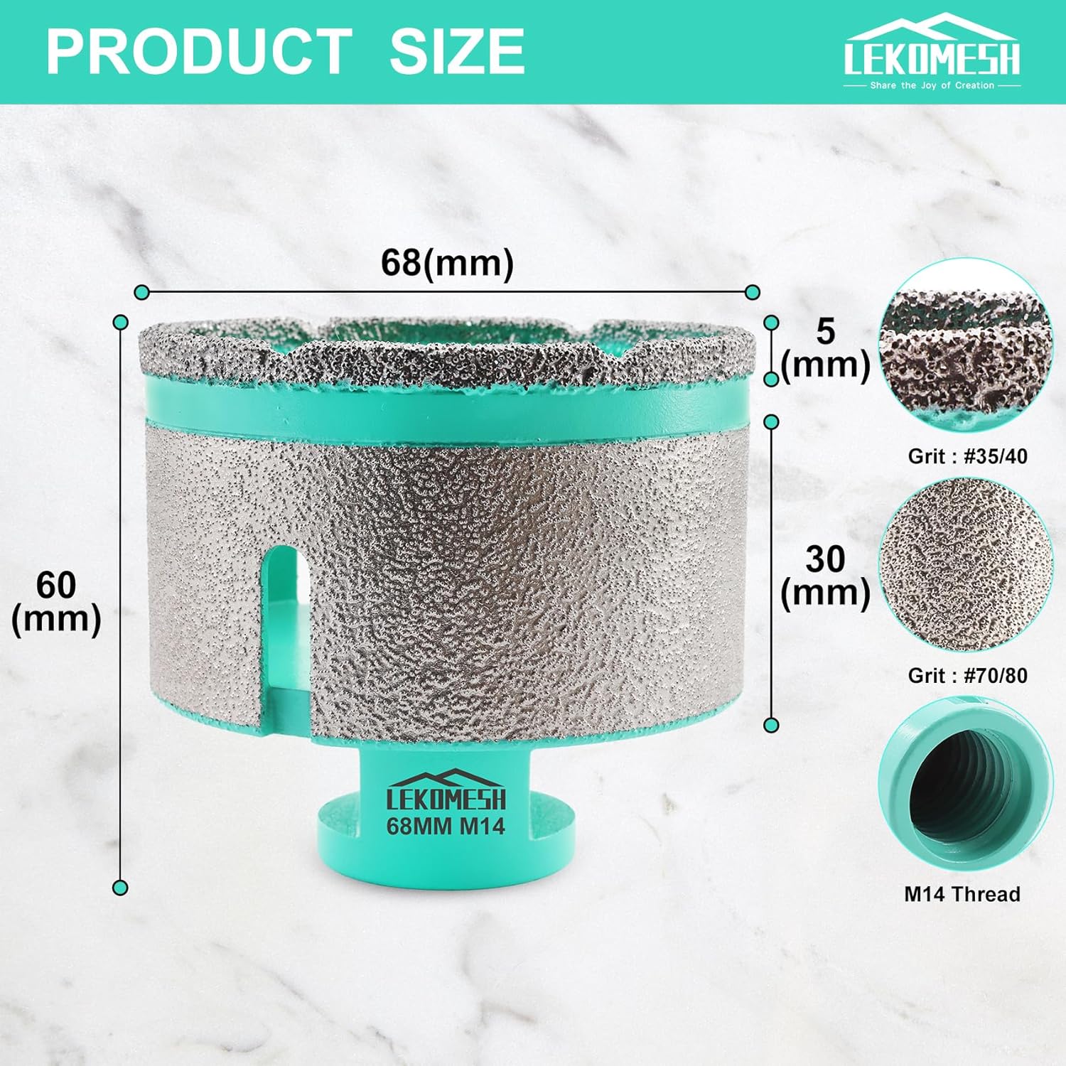 Diamantbohrkrone Fräserbohrer 68MM Fliesenbohrer - LEKOMESH Bohrung Vergrösserung Schleifen Polier L