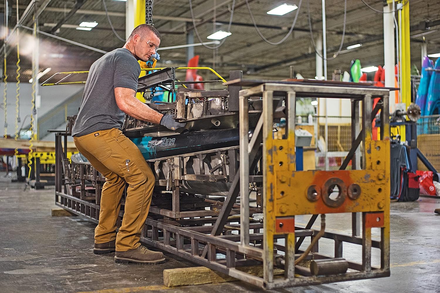 - Diese bequeme Jeans sitzt etwas unterhalb der Taille und verfügt über einen geräumigen Sitz und Oberschenkel mit einem geraden Bein, das über Stiefel passt. Halten Sie die Werkzeuge Ihres Handwerks griffbereit mit der Hammerschlaufe am linken Bein und den doppelten Werkzeugtaschen auf der rechten Seite
