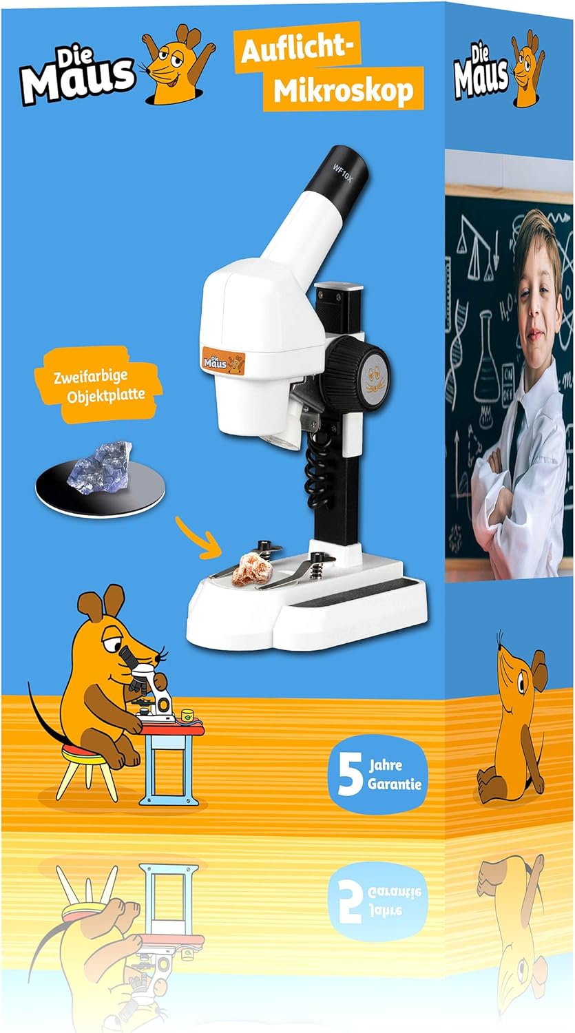 DieMaus Mikroskop mit LED-Beleuchtung, 20x Vergrösserung, Leicht und Tragbar, für Kinder ab 6 Jahren