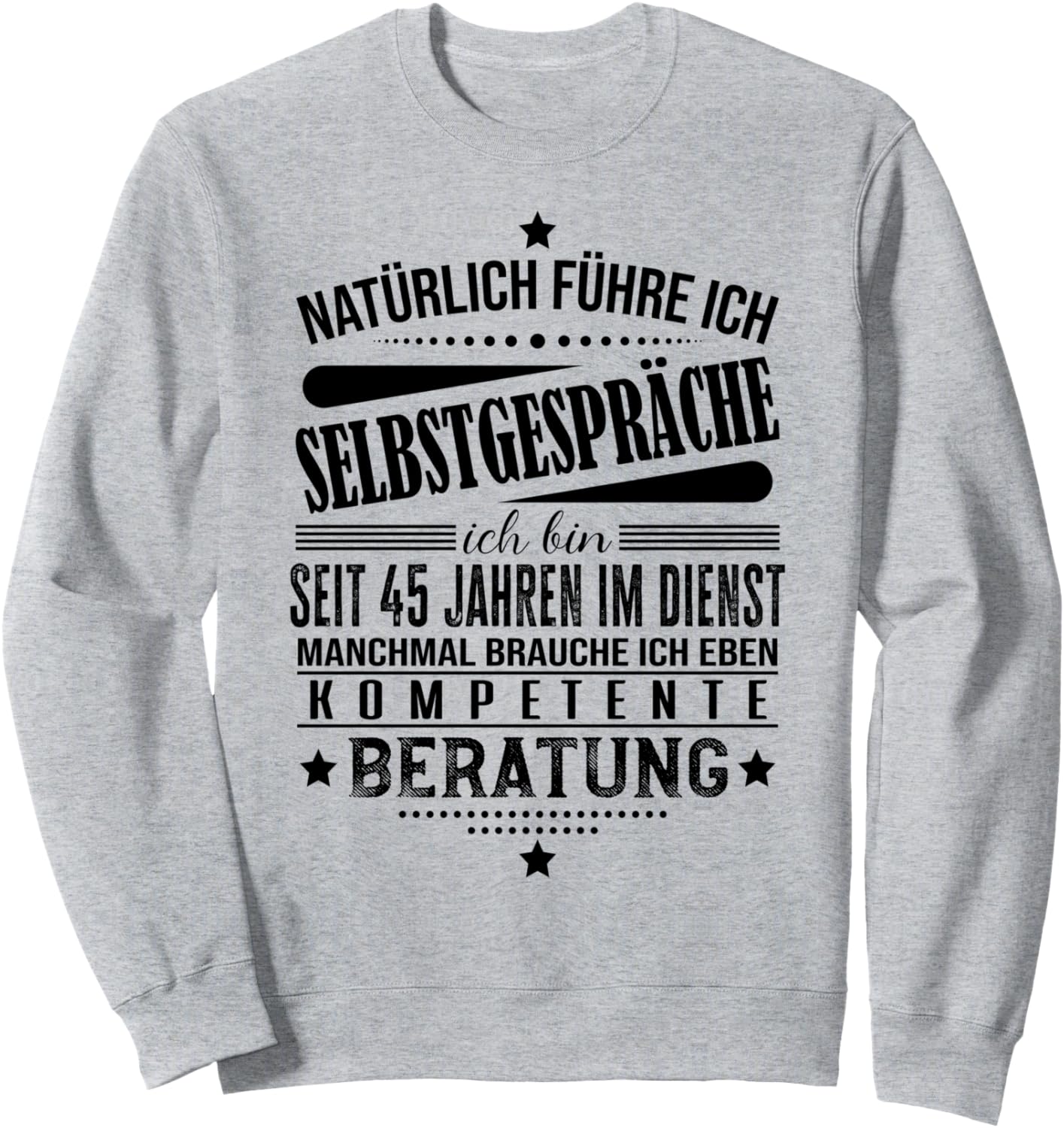 PRODUKTBESCHREIBUNGEN Design mit dem Spruch "Natürlich führe ich Selbstgespräche ich bin seit 45 Jahren im Dienst manchmal brauche ich eben kompetente Beratung". Du suchst ein 45 Jahre Jubiläum Geschenk für ein 45 jähriges Dienstjubiläum oder Firmenjubiläum? Dann bist du hier richtig. Tolles Dienstjubiläum Motiv für 45 jähriges Jubiläum Dieses Dienstjubiläum & Firmenjubiläum 45 Jähriges Jubiläum Produkt ist von 45 Jahre Jubiläum und Firmenjubiläum Design erstellt.