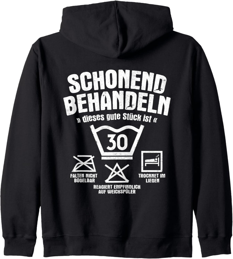 PRODUKTBESCHREIBUNGEN Schonend behandeln 30 – dieses gute Stück ist 30. Eine witziger Spruch Aufdruck als lustige Geschenkidee zum 30. Geburtstag für Herren und Damen. Ein toller Scherzartikel für Männer und Frauen zum 30er. Schonend behandeln! Falten nicht bügelbar. Reagiert empfindlich auf Weichspüler. Trocknet im Liegen. Dieser lustige Pflegehinweis für 30 Jahre alte Frauen und Männer ist einem Wäscheetikett nachempfunden. Ein tolles Spassmotiv für die Dreissiger Feier. Mehr