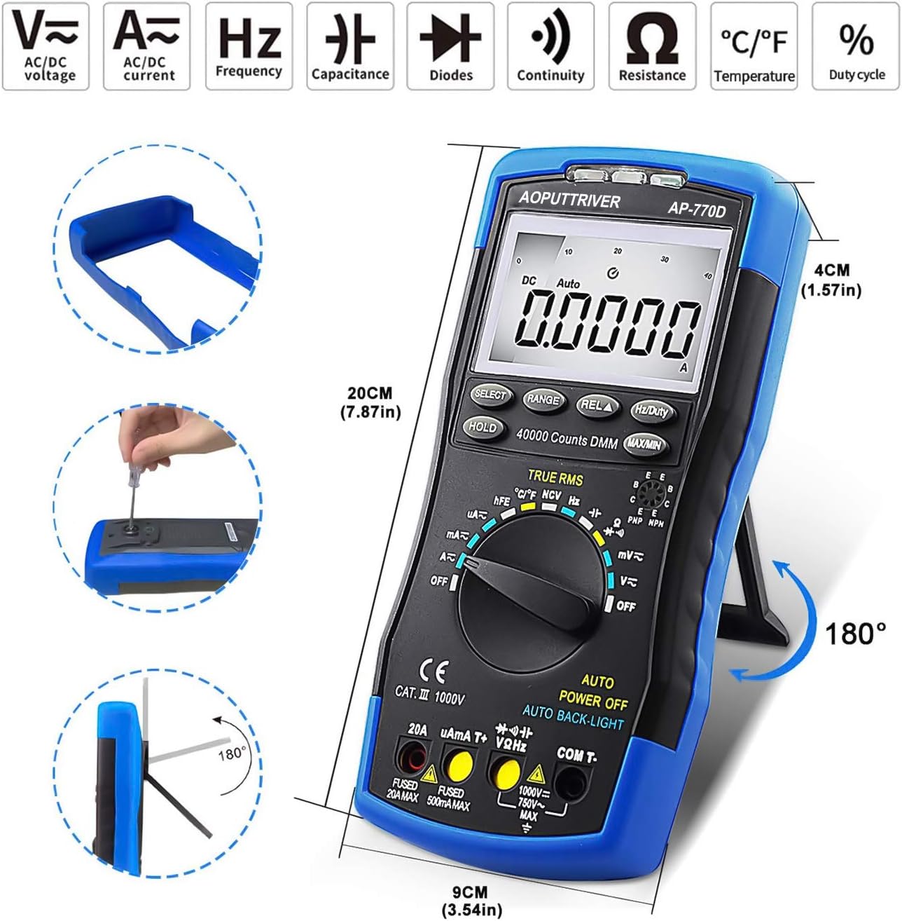 - đăProfessionelles HochprĂ€zises MultimeterăProfessionelles AP-770D-Multimeter mit 40000-ZĂ€hl-Anzeige und ausgezeichneter PrĂ€zision zur genauen Messung von AC / DC-Spannung, AC / DC-Strom, Widerstand, KapazitĂ€t, Temperatur, Frequenz,