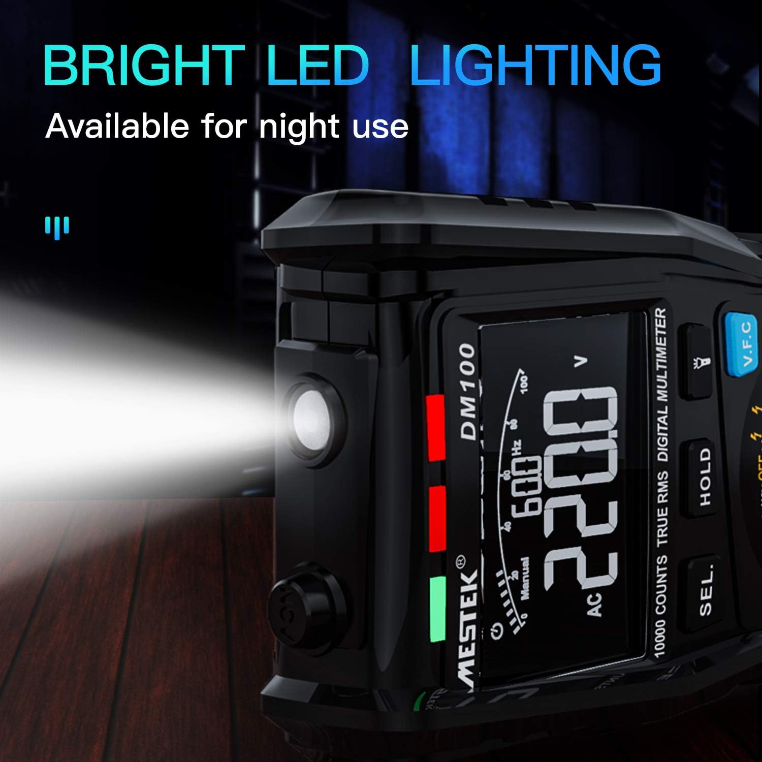 - 🥇[Umgekehrter VA-Bildschirm] - Verbessert das Leseerlebnis, die beleuchteten Zahlen und Buchstaben mit schwarzem Hintergrund machen es sehr einfach zu lesen. Das voltmeter zeigt 3 Testergebnisse auf dem Bildschirm, Spannung, Frequenz und analogen