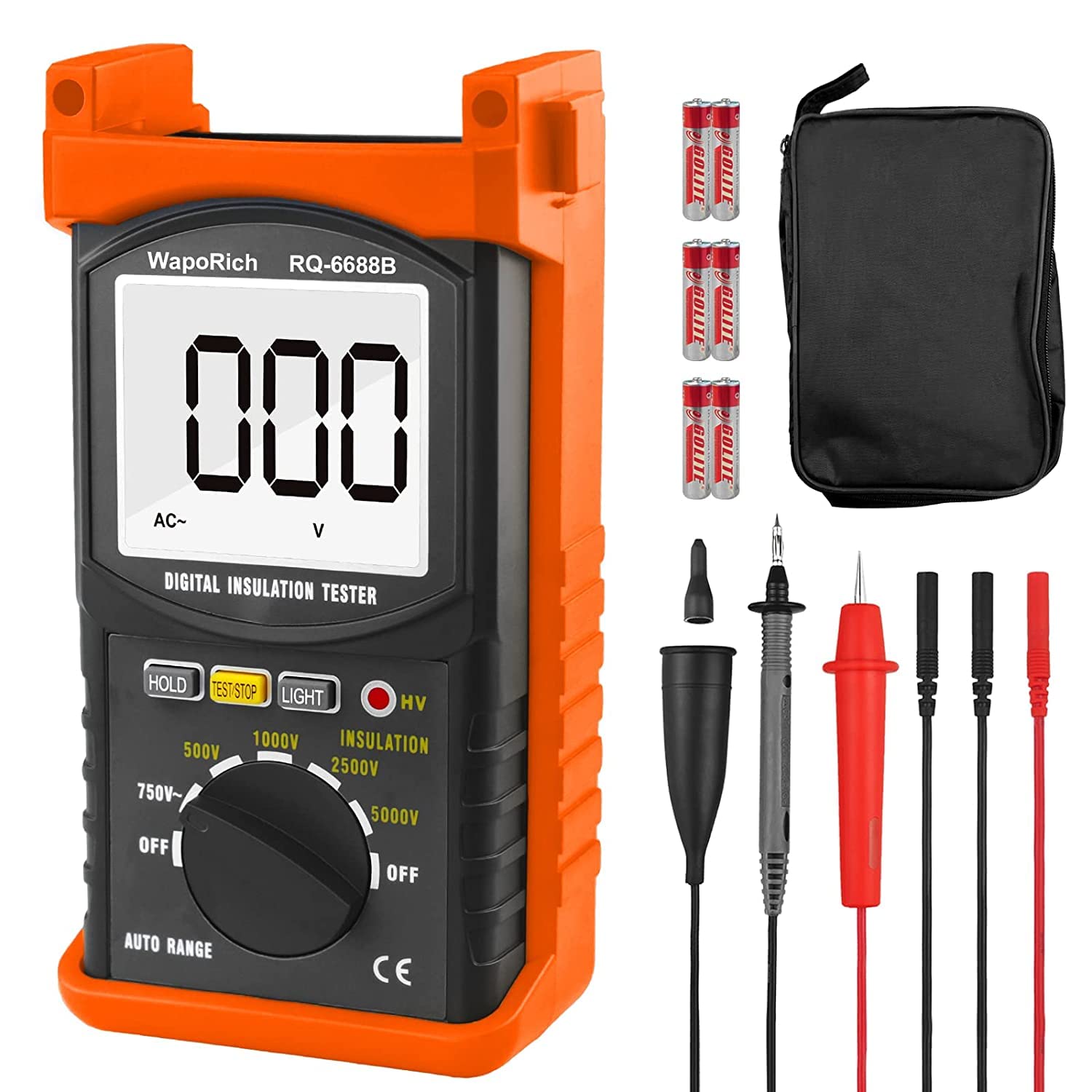 - ✅【Breite Prüfspannung】 RQ-6688B kann die Ausgangsprüfspannung zwischen 500 V/1000 V/2500 V/5000 V auswählen und AC-Hochspannung von 1 V bis 750 V messen. Es ist eine Messung, die sich ideal für elektrische Hochspannungsgeräte und den