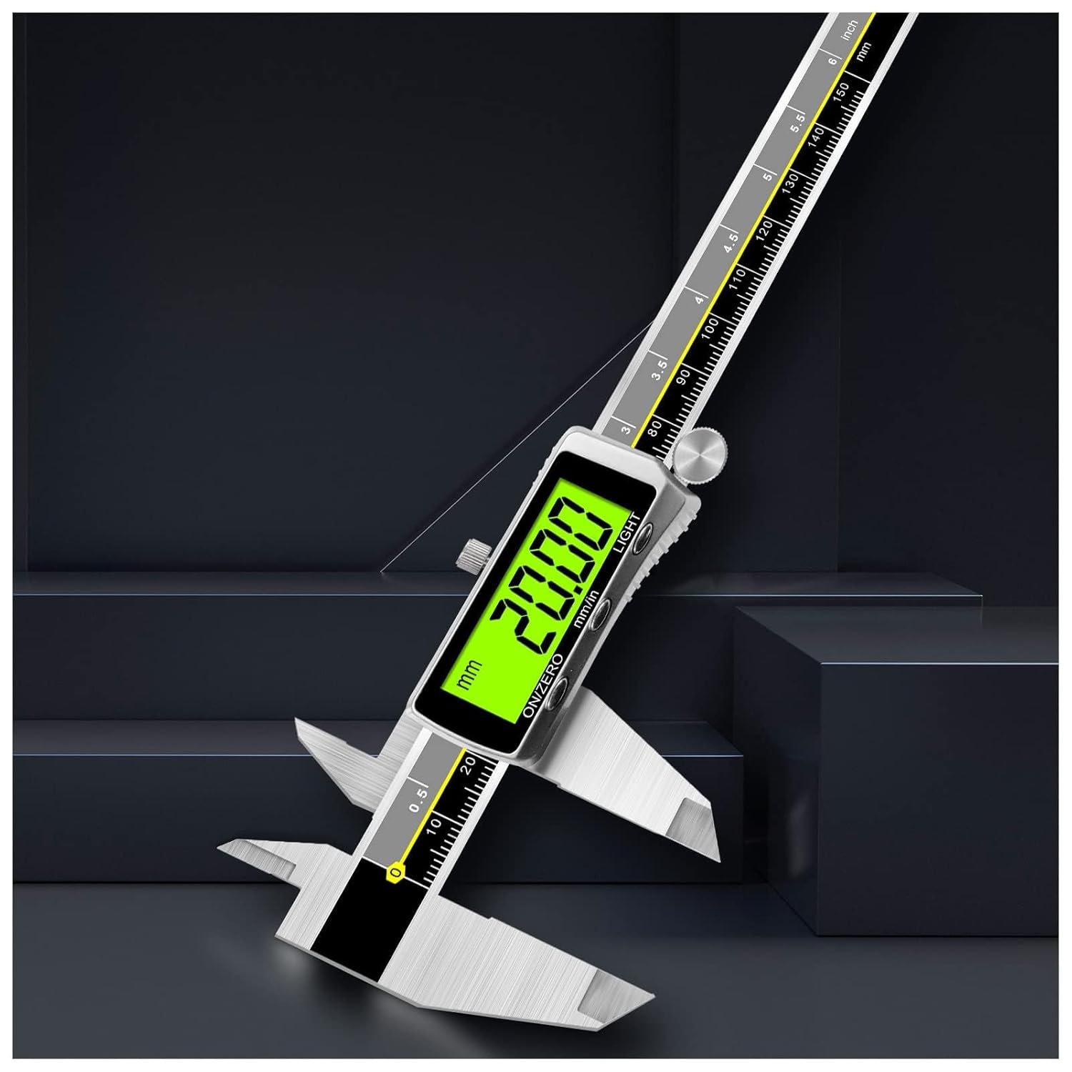 - Design mit Hintergrundbeleuchtung: Weigern Sie sich, in der Dunkelheit nach Licht zu suchen! Der Messschieber ist mit einem hochwertigen Leuchtchip ausgestattet. Drücken Sie die Taste "LIGHT", um die Hintergrundbeleuchtung zu aktivieren. Sie können