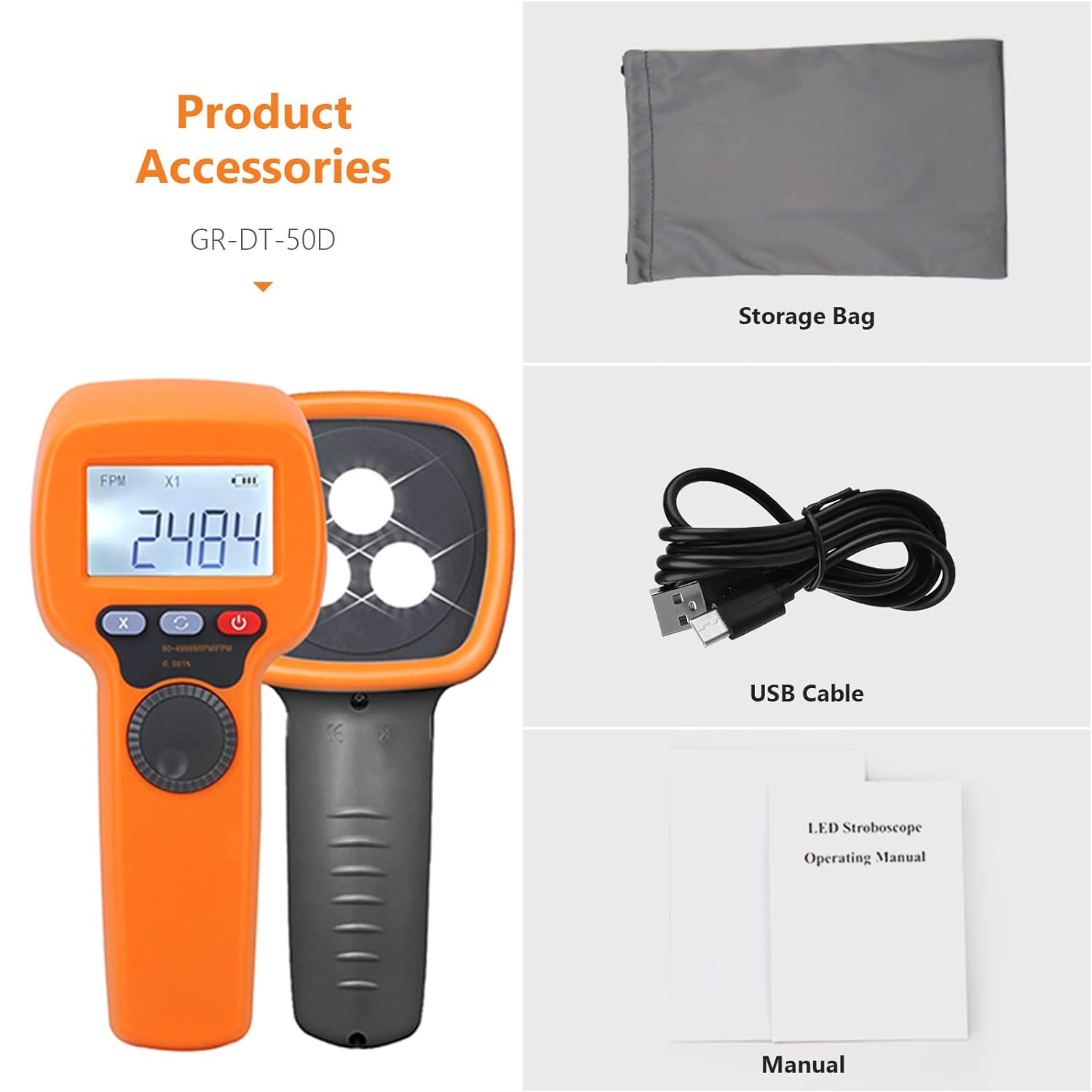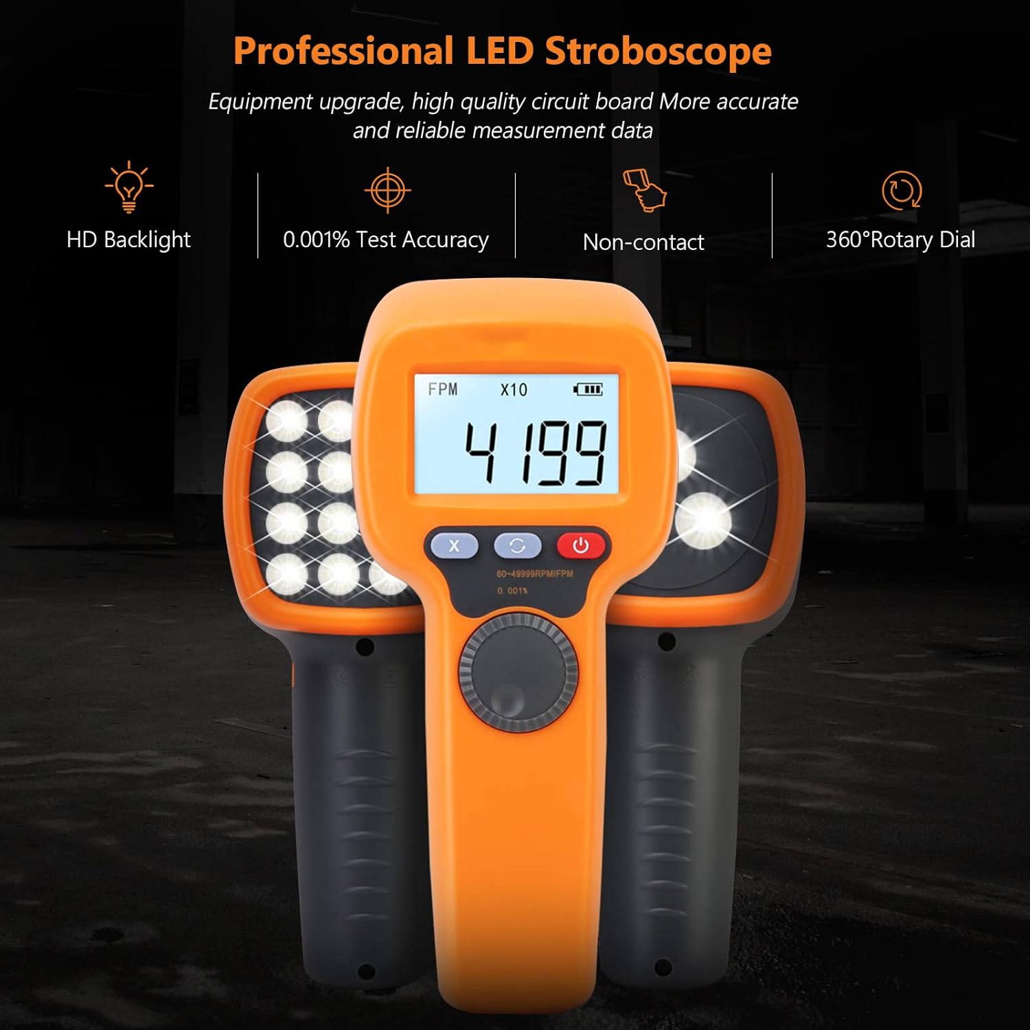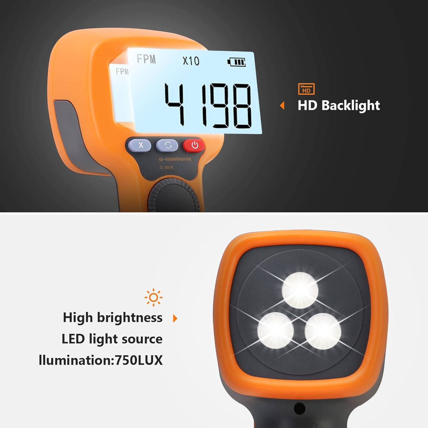 - 【Professionelles Stroboskop】 Unter Verwendung der digitalen Frequenzsynthesetechnologie ist die Flimmerfrequenzausgabe genauer, stabiler und zuverlässiger. Die Lichtquelle verwendet importierte LED. Messbereich: 60-49999 RPM, Sie können die