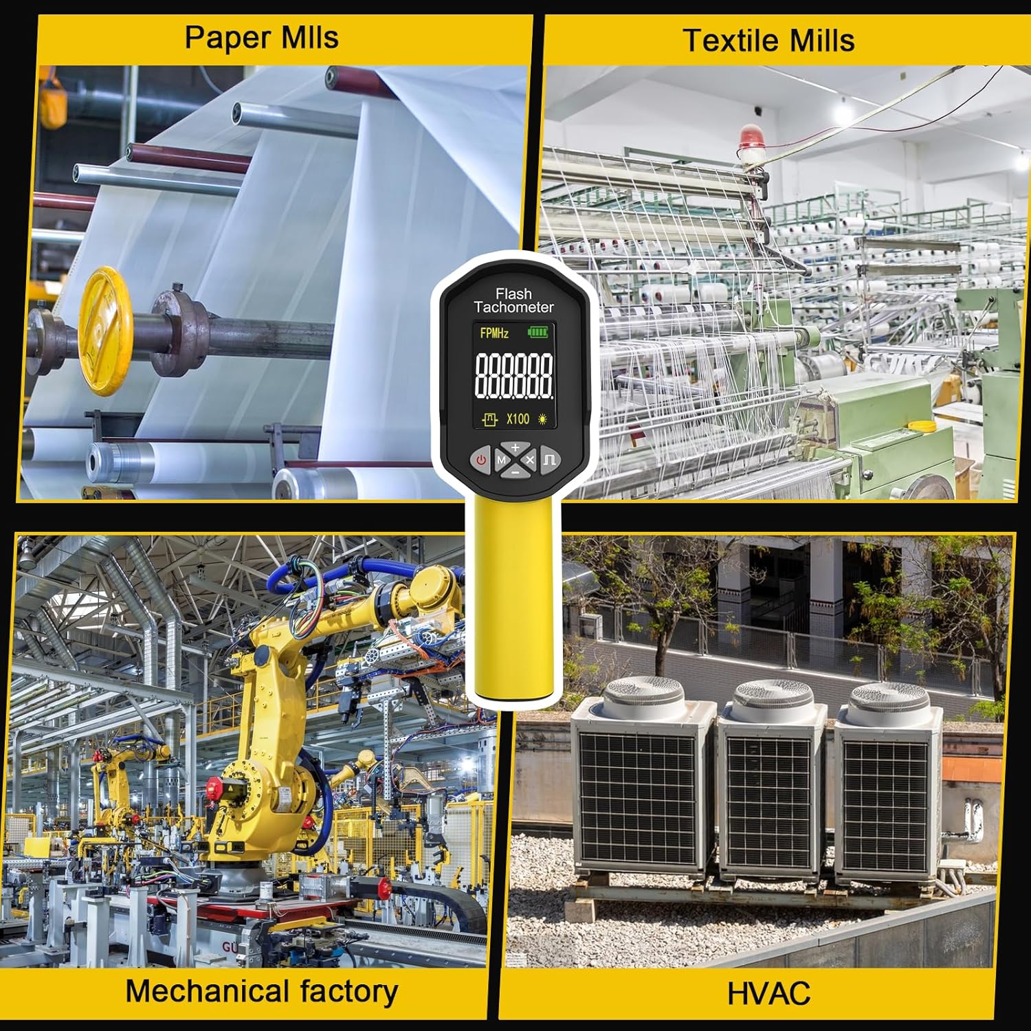 - 【Stroboskopfrequenz einstellbar】Blitz-Tachymeter bietet eine gepulste Lichtquelle mit einstellbarer Frequenz und sehr kurzer Dauer. Wenn sich ein elektrischer Ventilator mit 1300 Umdrehungen pro Minute dreht, ist die Blitzfrequenz auch 1300 Mal pro