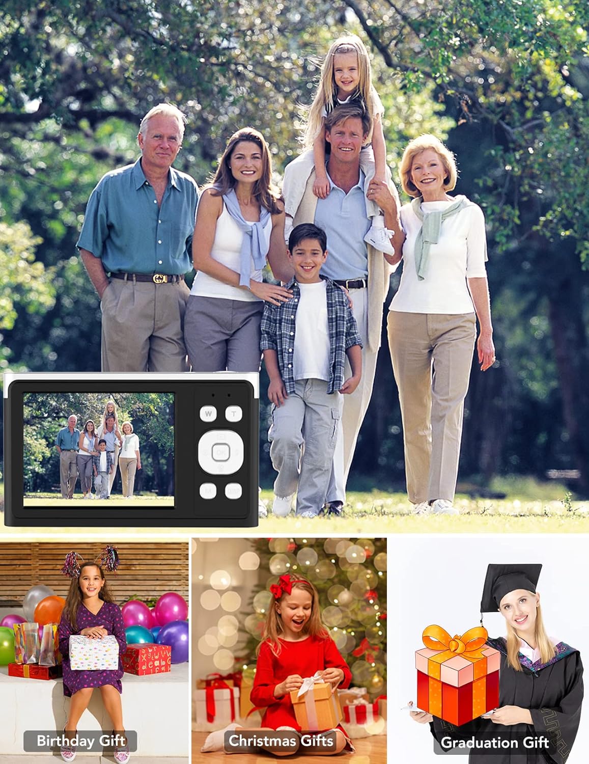 - Entwickelt für Kinder: Diese Vlogging-Kamera wurde speziell für Kinder entwickelt. Das leichte Design und die geringe Grösse machen sie bequem zum Mitnehmen, um glückliche Momente jederzeit und überall festzuhalten. Sie können diese tragbare Kamera
