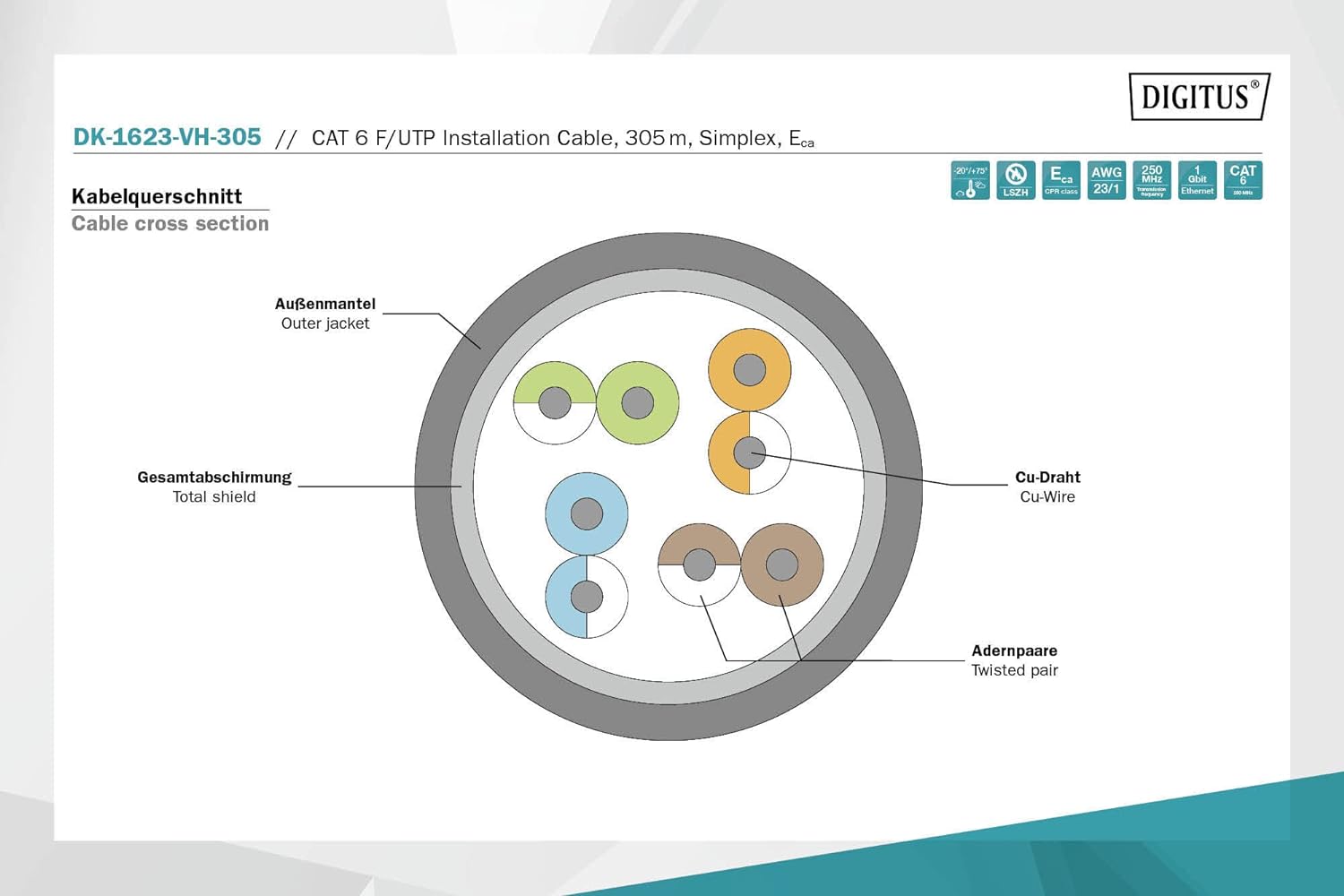Variante: 305 m (Simplex) Cat 6 - Eca - F-UTP Standardkabel