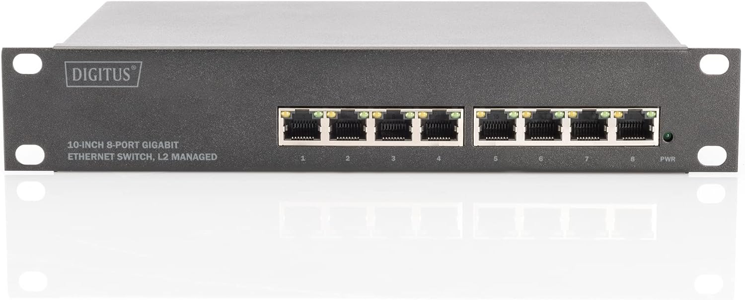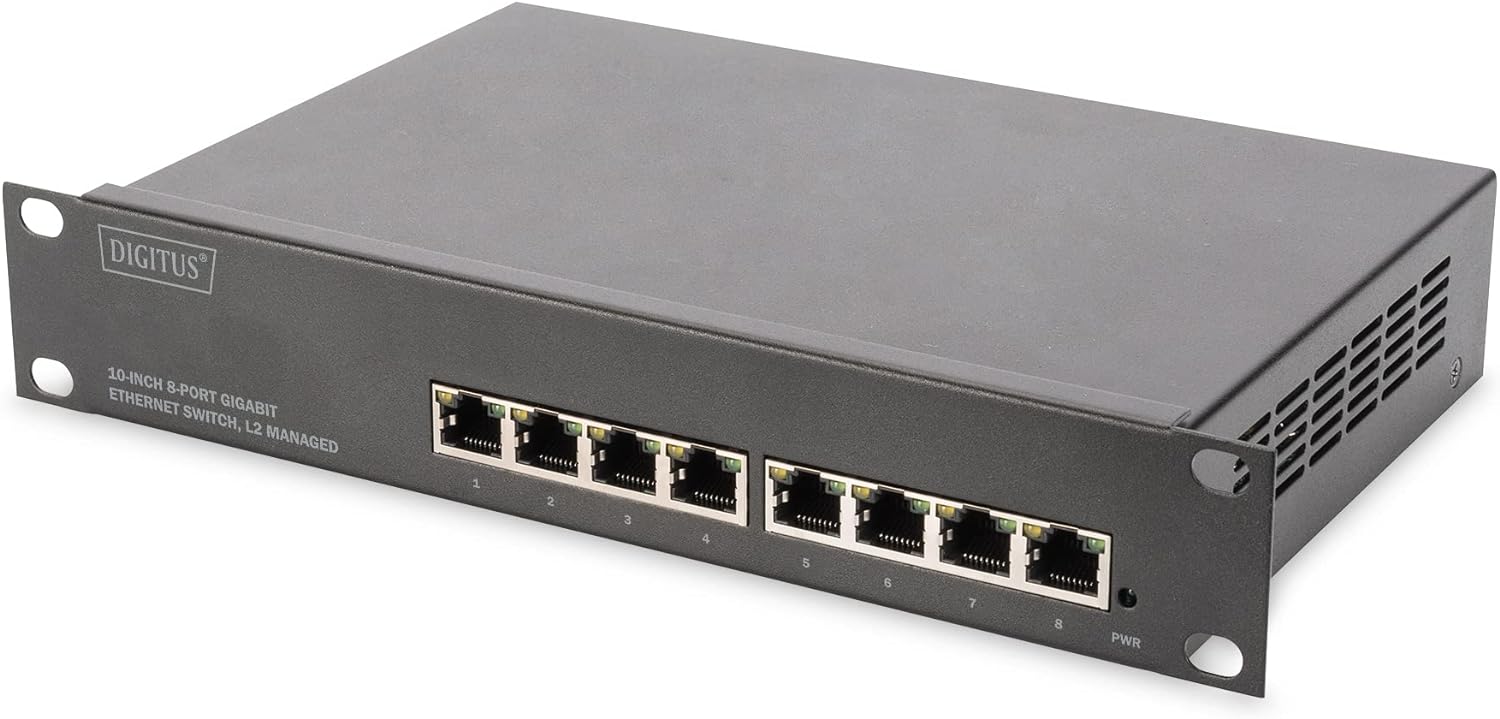 DIGITUS Gigabit Ethernet Netzwerk-Switch - 10 Zoll - 8 Ports - L2+ Managed - VLAN, Link Aggregation