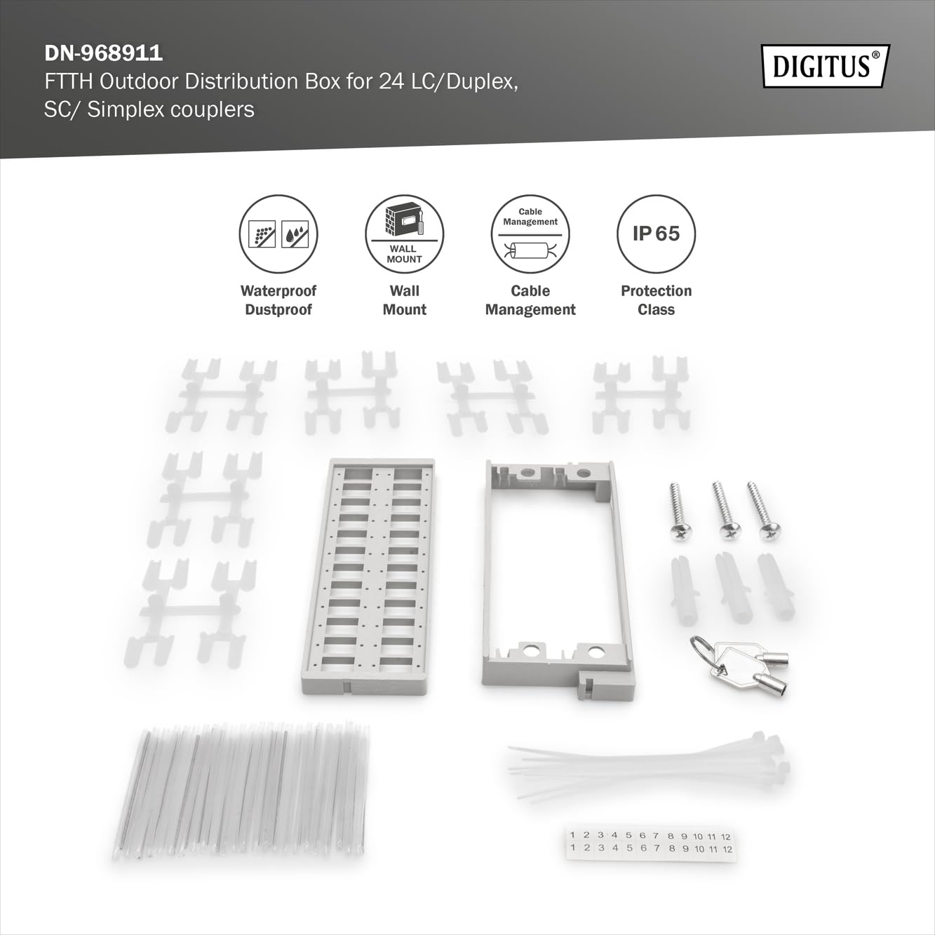 DIGITUS FTTH Distributionsbox für Aussen - 24 LC/Duplex oder 24 SC/Simplex Kupplungen