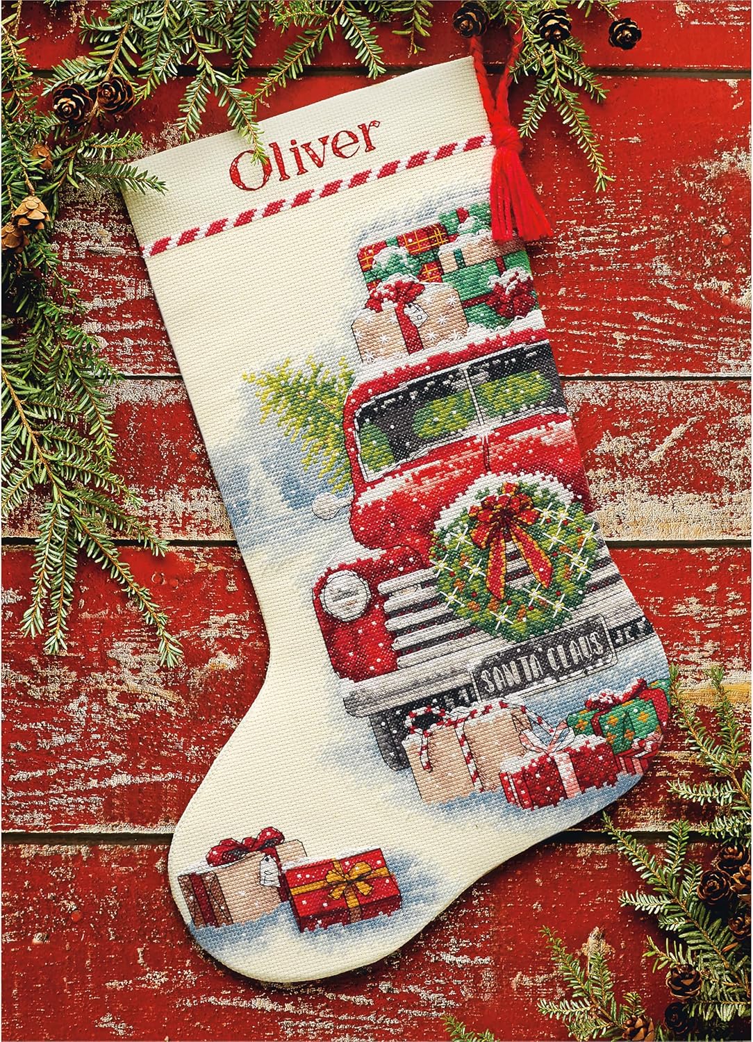 - Dieses Kreuzstich-Set kommt mit vorsortiertem Faden, elfenbeinfarbenem Aida-Stoff (Fadenzahl 14), Filz für den Strumpf, 100 % Wollgarn zum Aufhängen, Nadel und Anleitung (evtl. nicht in deutscher Sprache).