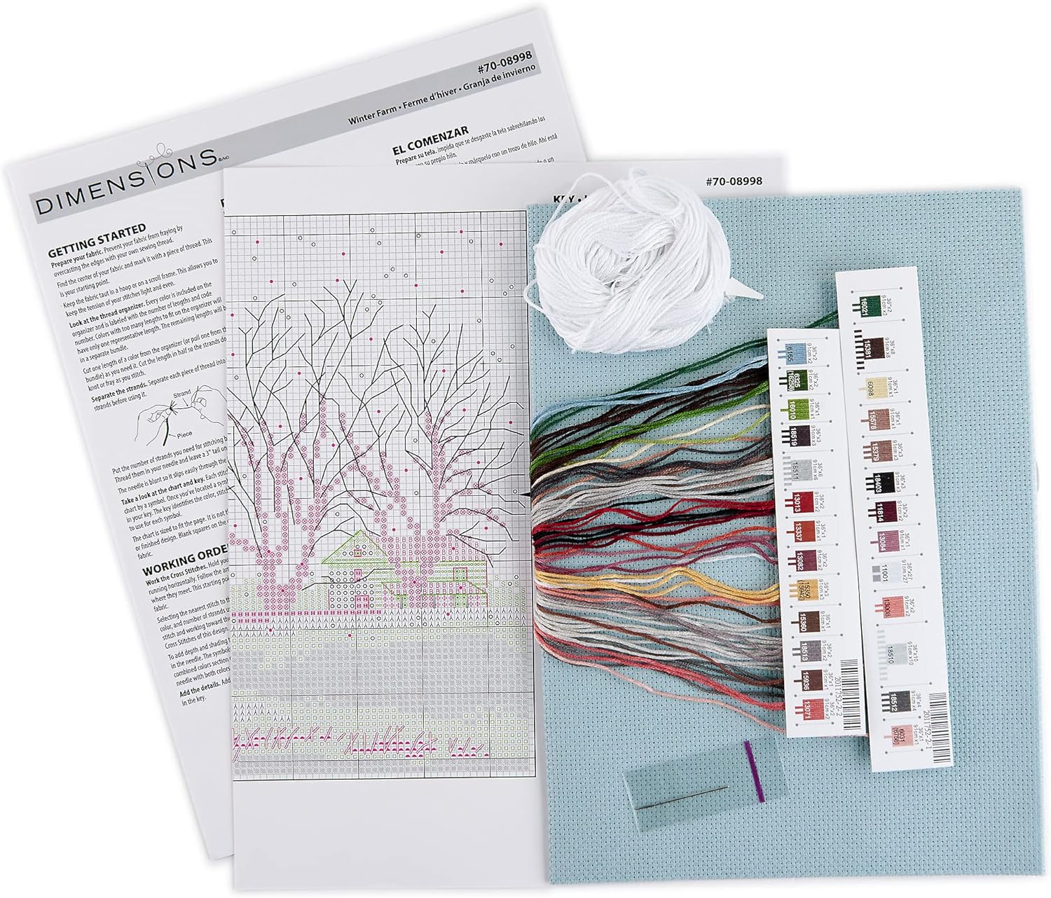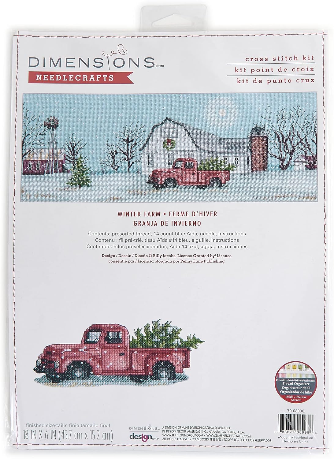 - Unser gezähltes Kreuzstichmuster zeigt einen ländlichen Winterfarm mit klassischen Weihnachtsbildern und Farben, perfekt als personalisierte saisonale Dekoration