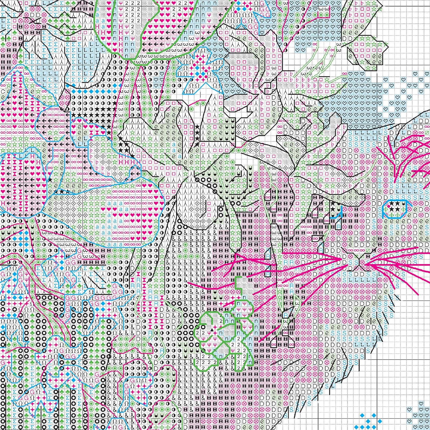 - Das fertige Kreuzstichmuster misst 27,9 cm B x 38,1 cm L.